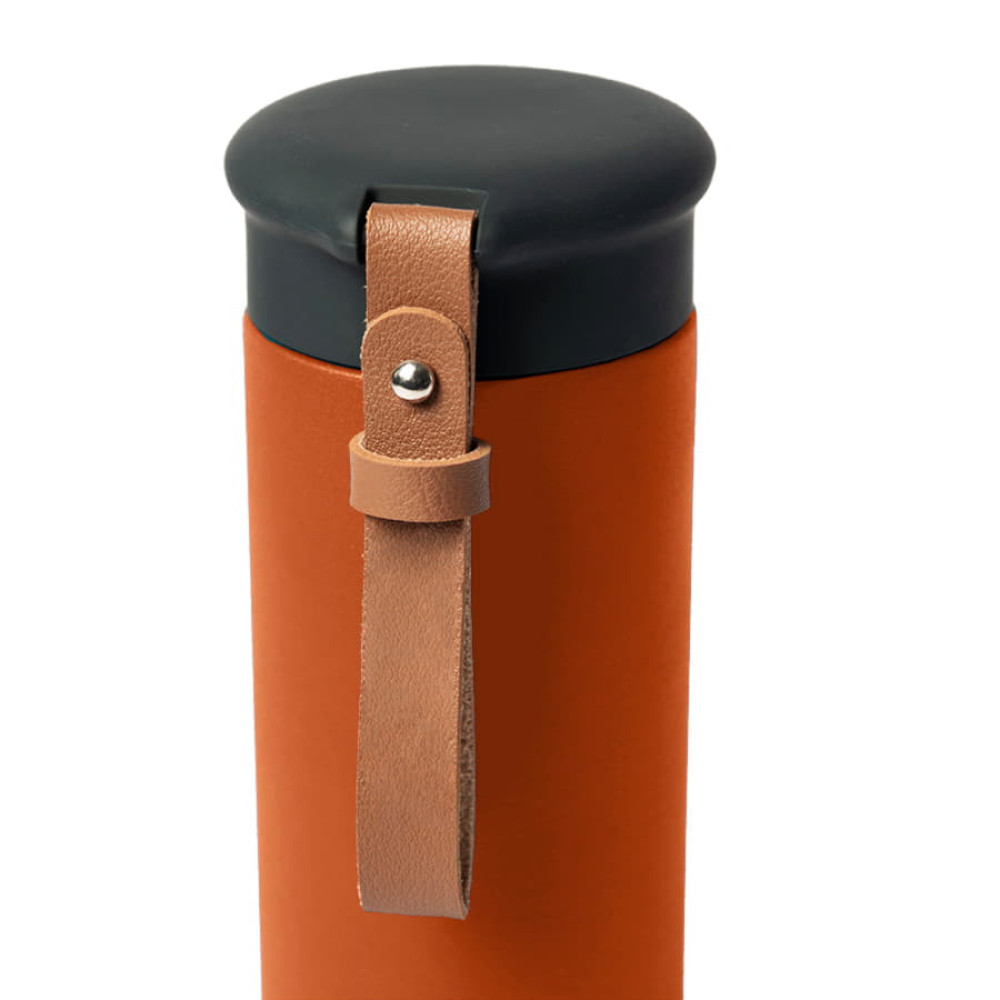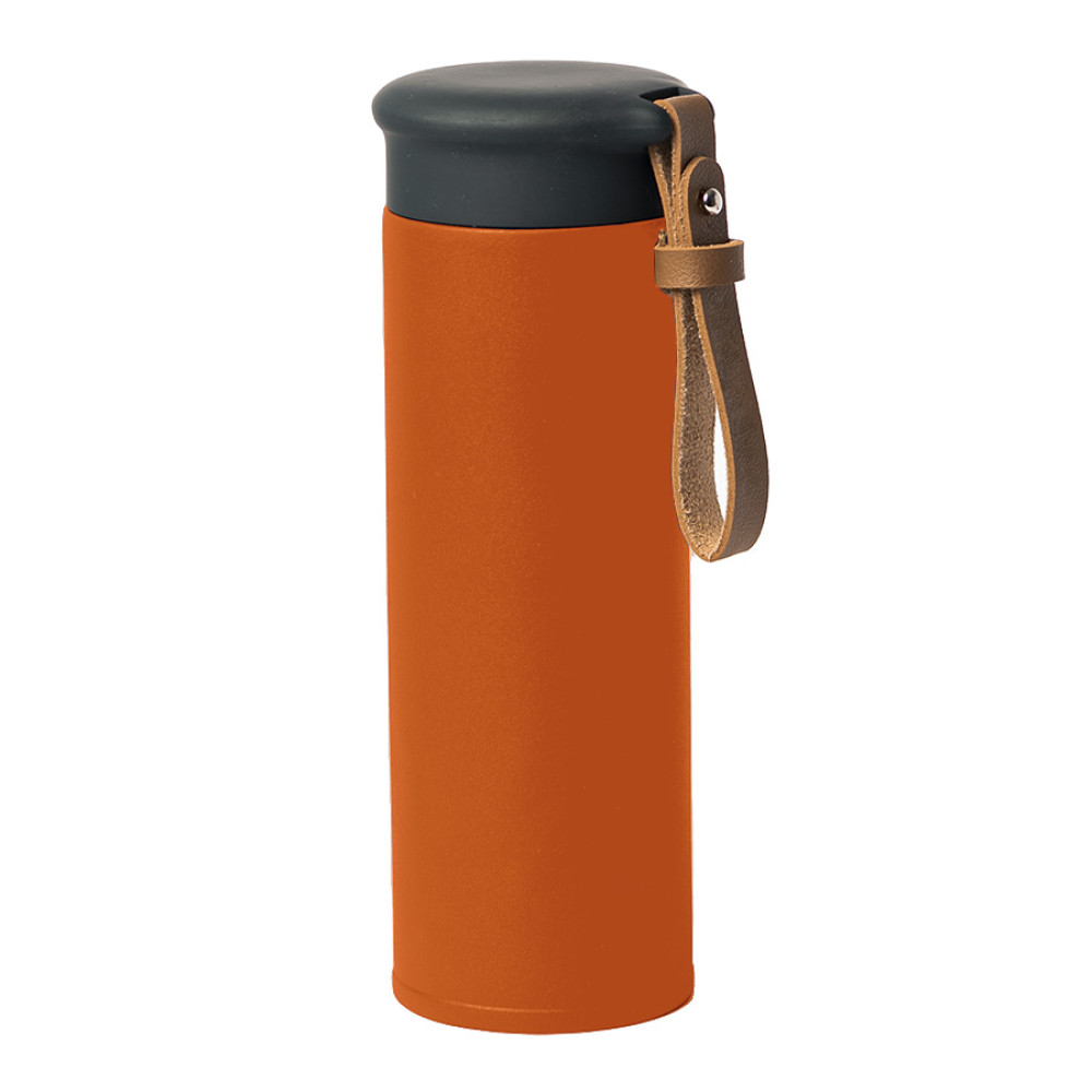 Вакуумный термос STRIPE с двойными стальными стенкамиСтильный матовый корпус термоса из нержавеющей стали (марка 304)Удобный ремешок из искусственной кожи, подходит для персонализацииГерметичная крышка с покрытием soft-touch не даст напитку пролиться