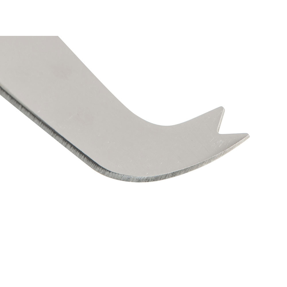 Классический нож для сыра имеет изогнутую форму, благодаря чему вам не придется держать его на весу — просто поставьте лезвие на разделочную поверхность и слегка нажмите на рукоятку, это обеспечит легкий ход. Раздвоенный кончик позволяет накалывать кусочки и разделять ломтики сыра, не касаясь его руками.