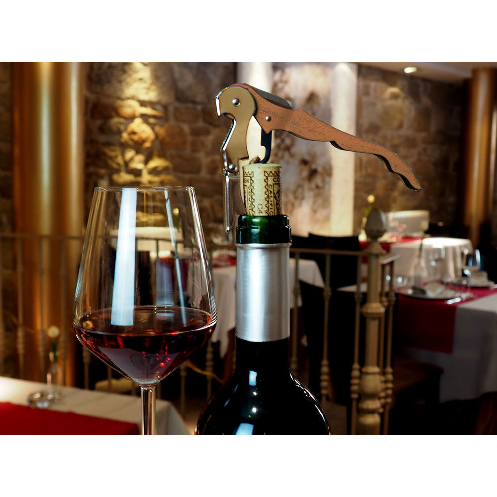 Штопор Pulltap's Wood имеет стильное покрытие деревянного цвета и запатентованную систему двойного рычага, позволяющая с легкостью открывать бутылки, при этом не повреждая пробку. Также данное изделие оснащено специальным ножом для обрезания фольги.