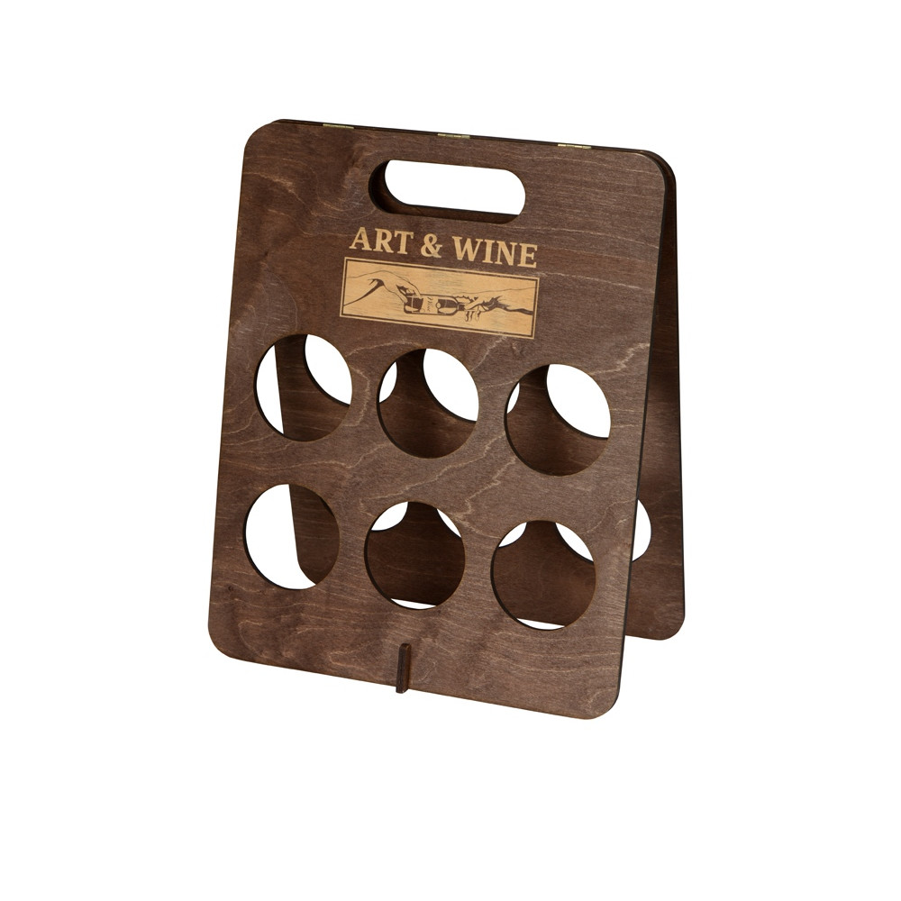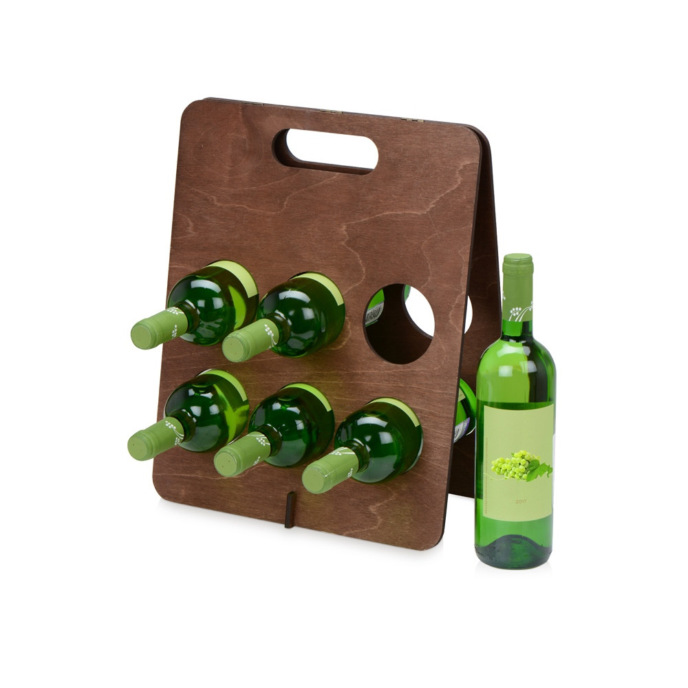 Подставка под винные бутылки Groot – незаменимый аксессуар, который пригодится на любом корпоративном мероприятии и украсит праздничный стол. Она изготовлена из легкого, но при этом крепкого материала и имеет удобную ручку для переноски. Подставка выигрышно подчеркнет символику компании с помощью гравировки благодаря большому пространству для брендирования. В комплекте идет индивидуальная крафтовая коробка со стильным дизайном.