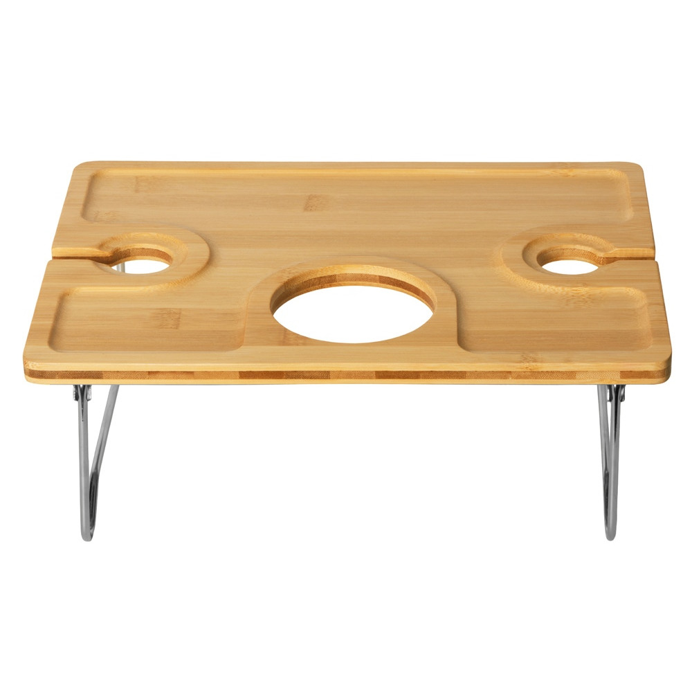 Изготовленный из экологически чистого и долговечного бамбука, этот столик не только красив, но и практичен. Его легкие и прочные металлические ножки складываются одним движением, обеспечивая компактное хранение и удобную транспортировку. Возьмите его с собой на пикник, на пляж, на дачу или используйте как стильный приставной столик дома – он везде будет к месту!