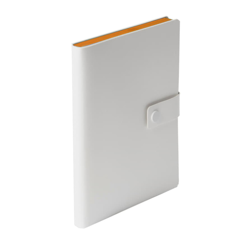 Цвет обложки белый Цвет обреза, близкий к пантону 165 С Размер 145*205 мм, переплет мягкий Обложка PU Valse PU застежка-клапан на кнопке Блок недатированный, в линейку Скругленные углы, двухкрасочная печать Бумага кремовая, плотность 70г м2 Форзац нахзац в цвет обреза 272 страницыПерфорация на 8ми последних листах Ляссе в цвет обреза Упаковка крафтовый сливбоксПримечание: возможен отпечаток кнопки с внутренней стороны обложкиВ данный момент происходит смена справочной части блока. Внешний вид изделия остается без изменений.