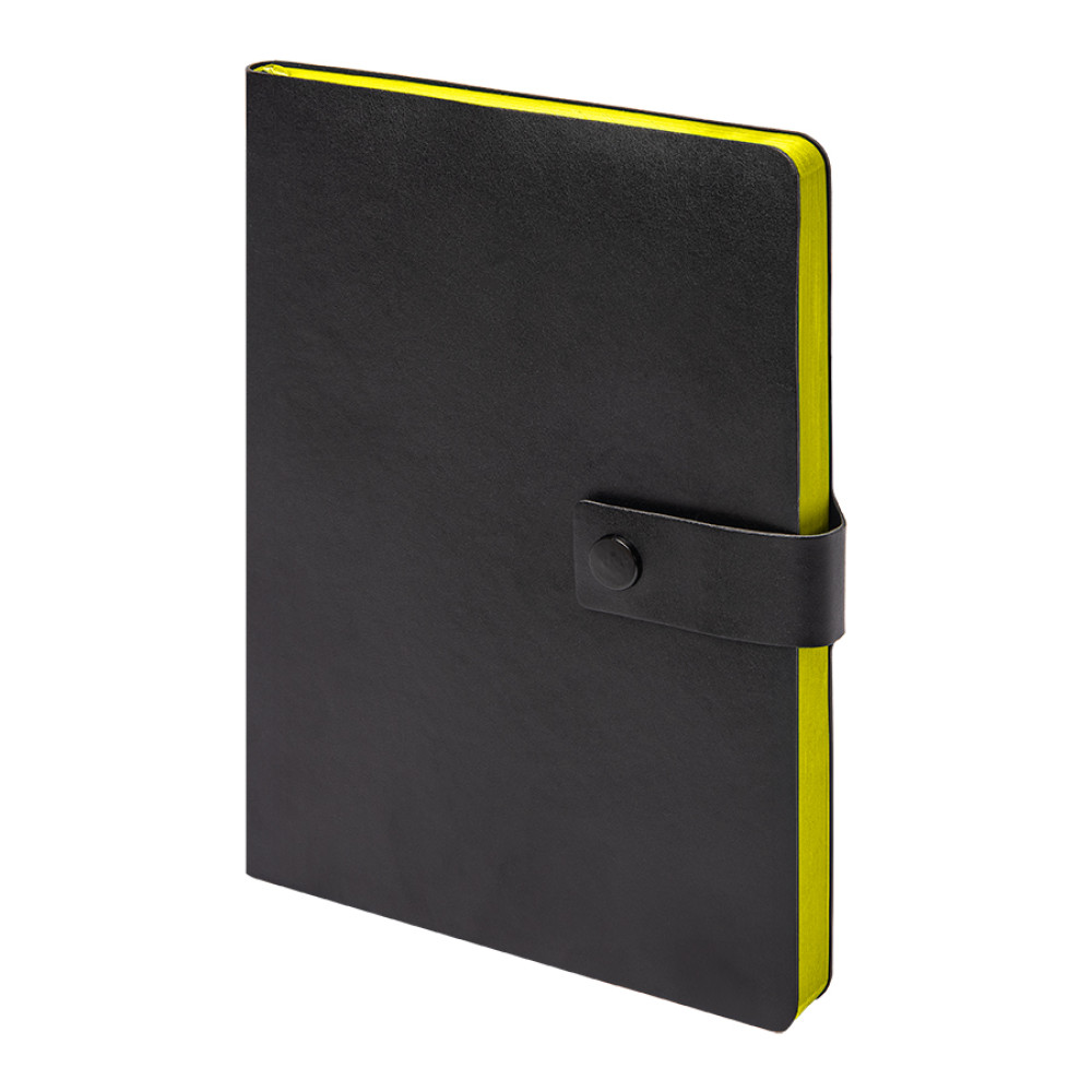 Цвет обложки черный Цвет обреза, близкий к пантону Yellow U Размер 145*205 мм, переплет мягкий Обложка PU Valse PU застежка-клапан на кнопке Блок недатированный, в линейку Скругленные углы, двухкрасочная печать Бумага кремовая, плотность 70г м2 Форзац нахзац в цвет обреза 272 страницыПерфорация на 8ми последних листах Ляссе в цвет обреза Упаковка крафтовый сливбоксПримечание: возможен отпечаток кнопки с внутренней стороны обложкиВ данный момент происходит смена справочной части блока. Внешний вид изделия остается без изменений.
