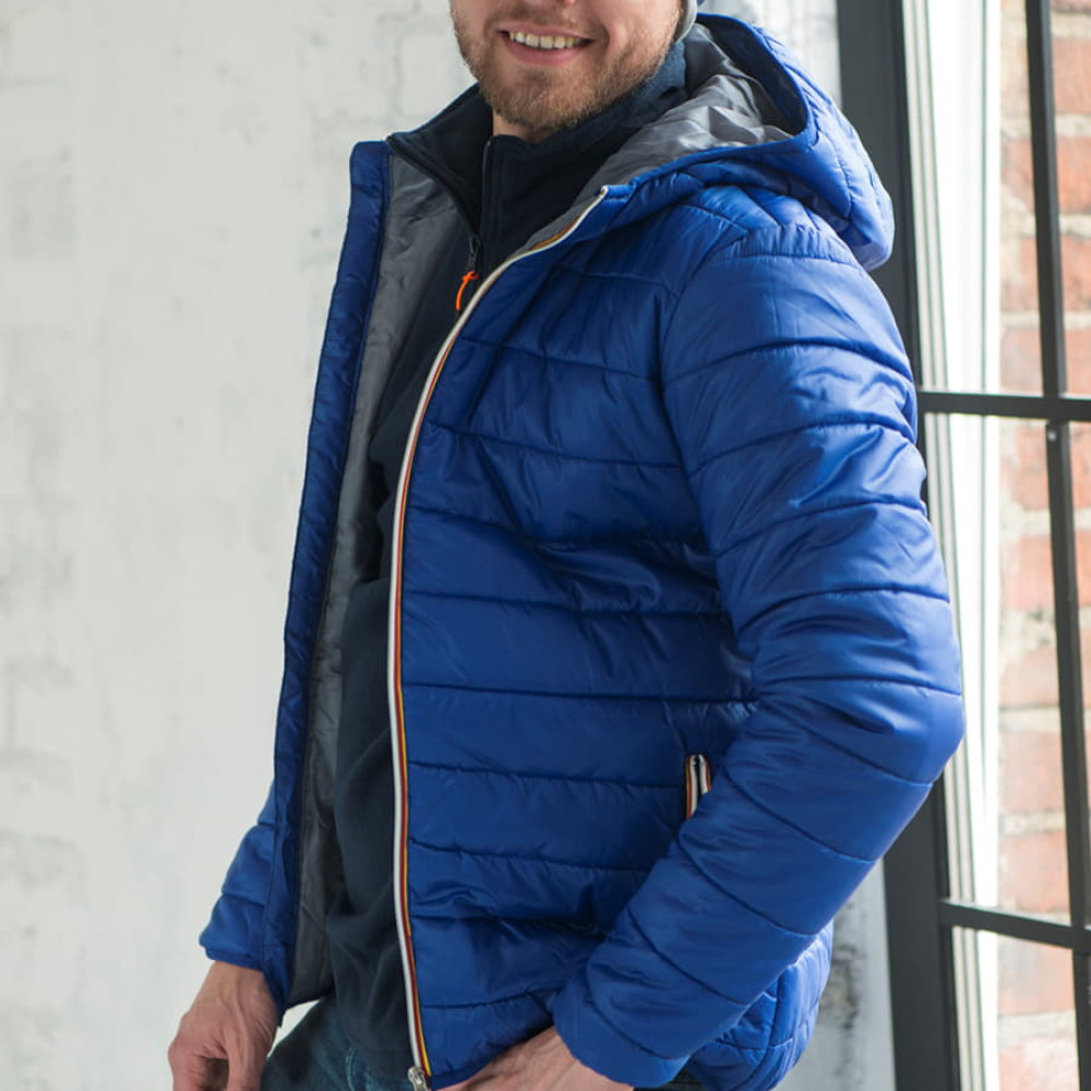 Основная ткань: цвет, близкий к Pantone Reflex Blue U, подкладка: цвет, близкий к Pantone 424 C Мягкая и легкая куртка из нейлона. Контрастная облегченная пластиковая молния со съемным пуллером. Два кармана на молнии. Внутренний карман на липучке. Манжеты рукавов, капюшон и низ куртки обрамлены эластичной резинкой.
