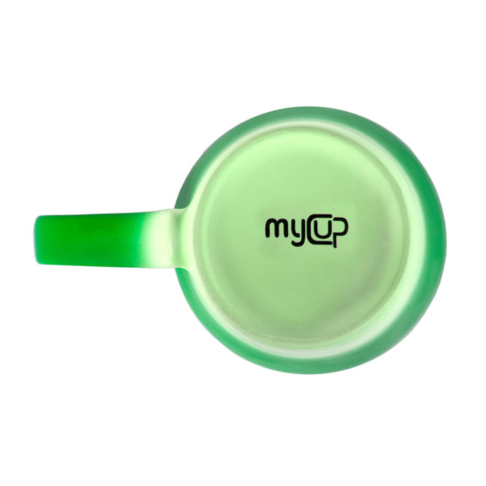 Переход от насыщенного оттенка в основной части кружки к совсем светлому внизу, для более выгодного представления логотипа на темной части Градиент - модный тренд, для его создания используются различные техники, краски и материалы, берутся различные цветовые сочетания