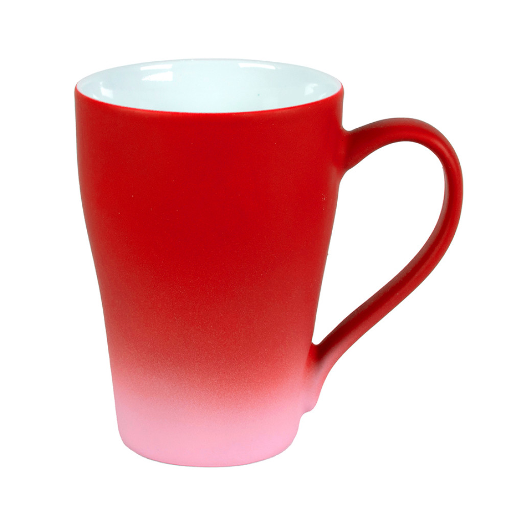 Переход от насыщенного оттенка в основной части кружки к совсем светлому внизу, для более выгодного представления логотипа на темной части Градиент - модный тренд, для его создания используются различные техники, краски и материалы, берутся различные цветовые сочетания