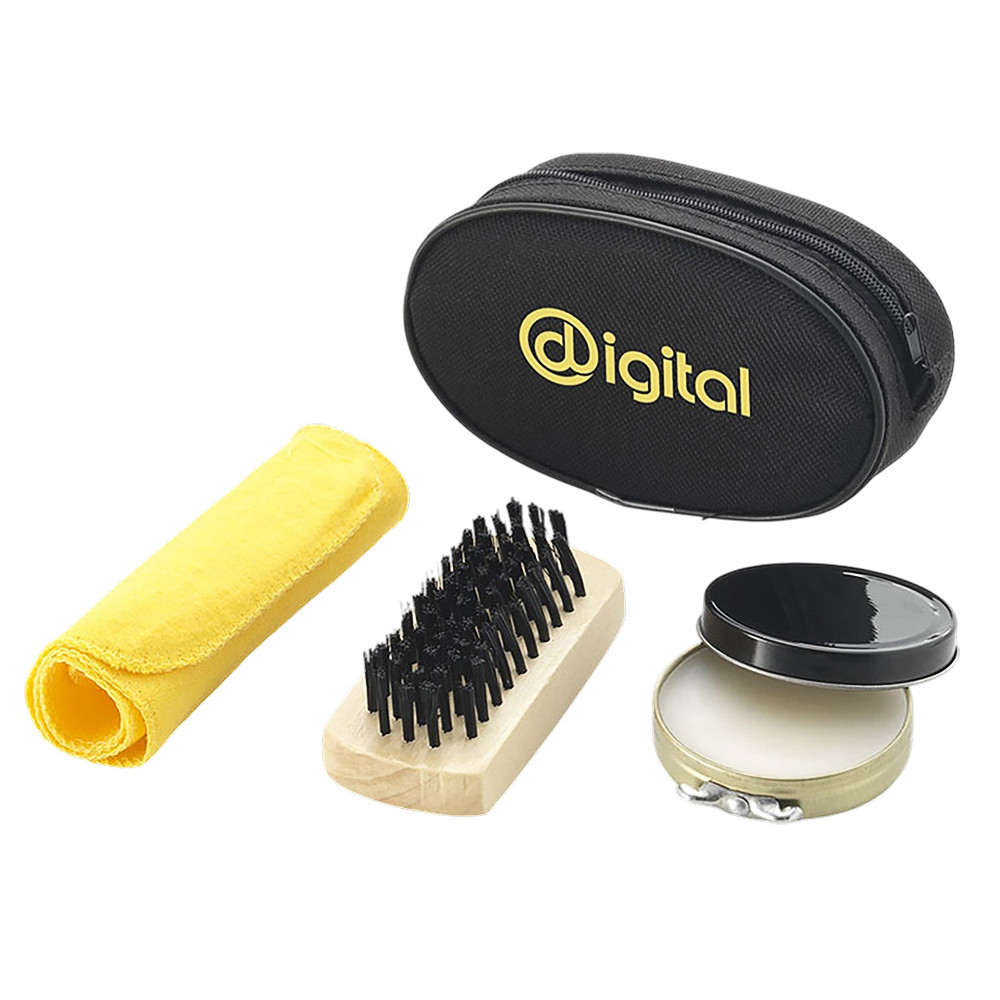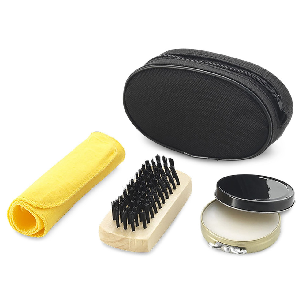 Набор для ухода за обувью - отличный подарок для тех, кто часто ездит в деловые поездки. В наборе такие необходимые аксессуары, как бесцветный крем для обуви, щетка, салфетка для полировки. Компактно упакованы в нетканый чехол, на который можно нанести изображение.