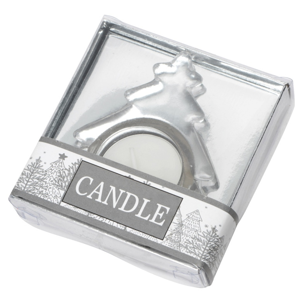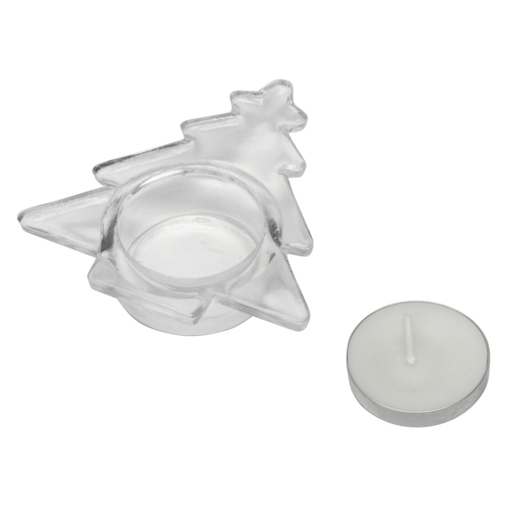 Подсвечник в виде новогодней елочки. Подходит для стандартных свечей - таблеток. Одна свеча в комплекте.
