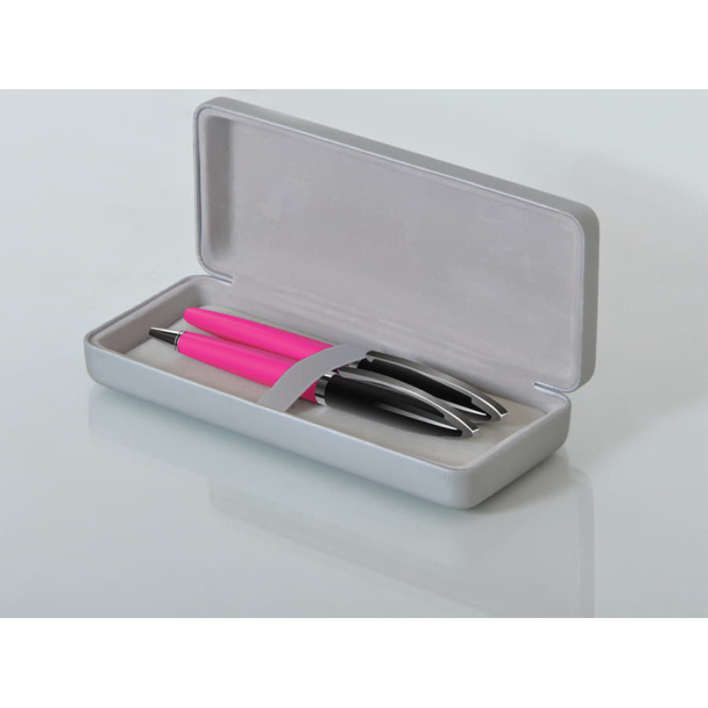 Цвет, близкий к Pantone 213C. Чернила такой ручки отличаются меньшей вязкостью - это означает, что линии письма будут более четкими и точными. Ручка пишет очень гладко, практически без нажима. Стержень Metal Roller, толщина пишущего узла 0.7 мм, синие чернила.