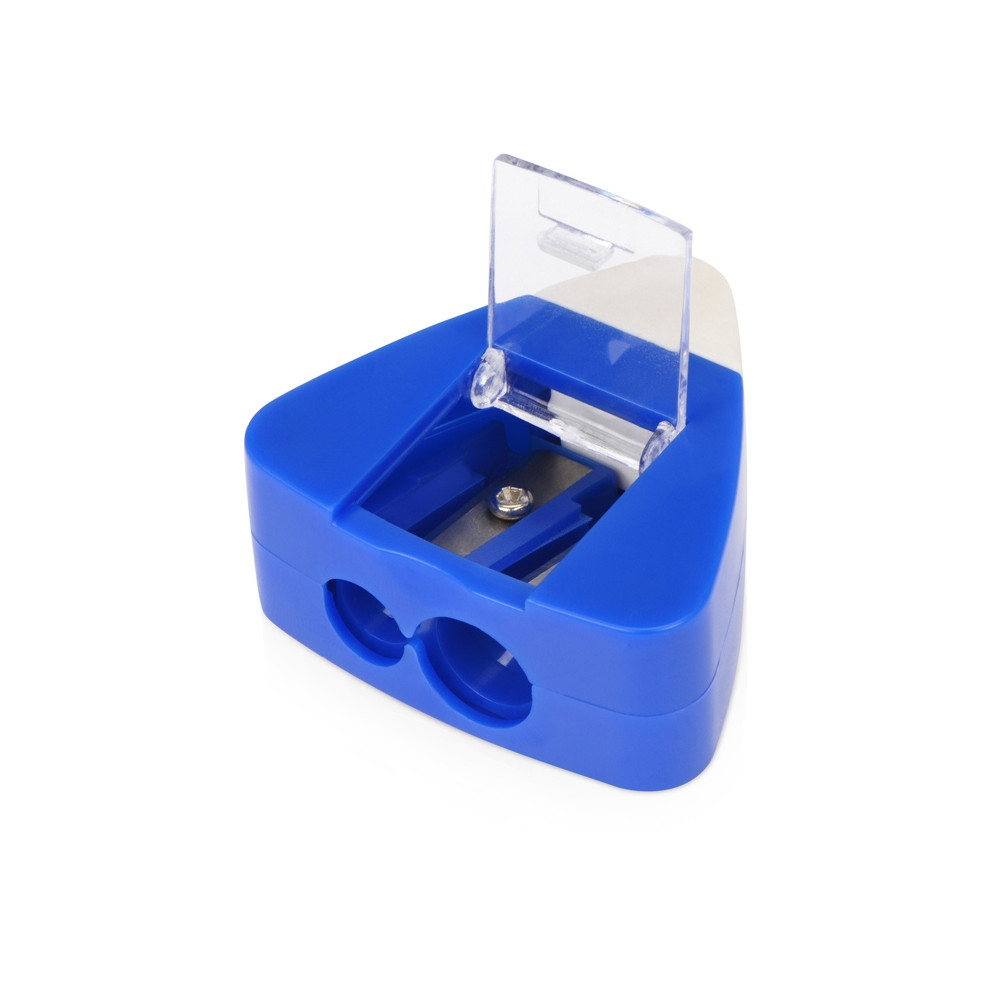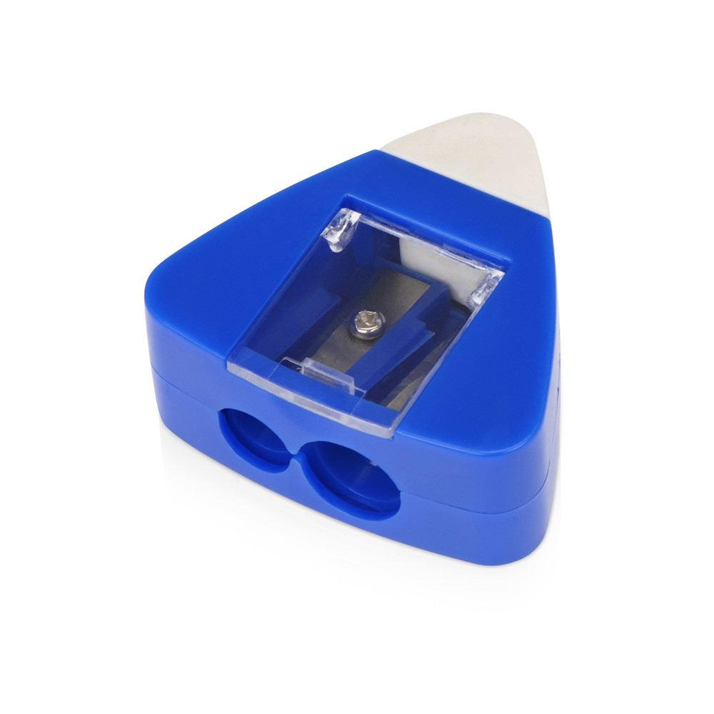 Точилка для карандашей разного диаметра и ластик в одном корпусе. Большое поле для нанесения логотипа.