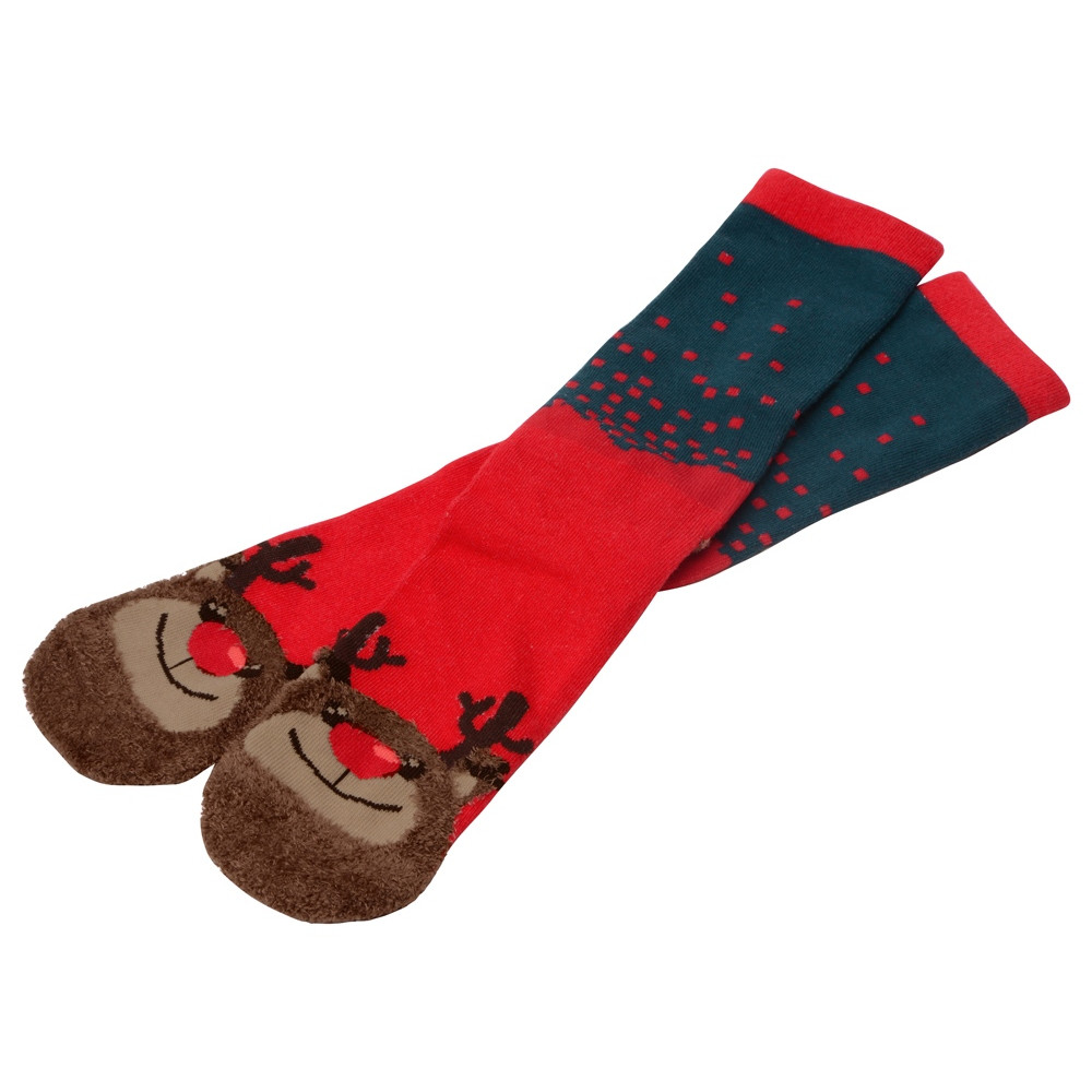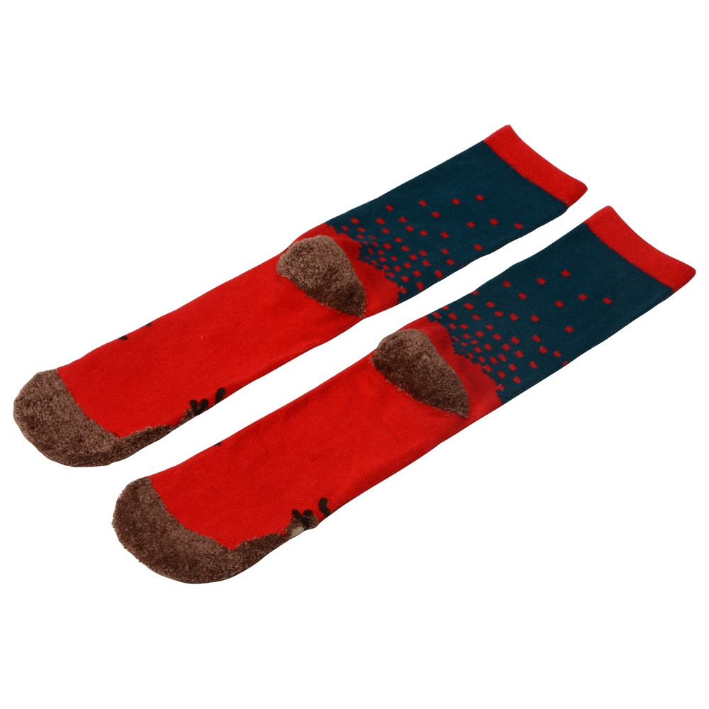 Рождественские носки прекрасно подойдут на роль подарка, который создает праздничное настроение. Этот набор состоит из двух пар, которые упакованы в мешочек из натурального хлопка. Одна пара украшена мягкими пушистыми мордочками рождественских оленей, а принт на второй изображает сапожки Санта Клауса. Ткань - смесь хлопка, полиэстера и спандекса, что обеспечивает носкам износостойкость, а мягкая широкая резинка – удобную посадку по ноге. Мешочек-упаковку можно брендировать по вашему желанию.