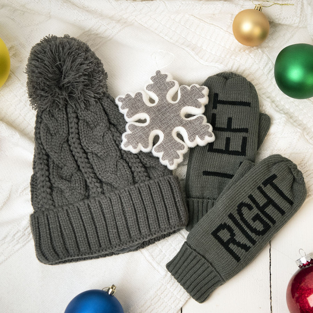 Подарочный набор HUG: варежки, шапка, украшение новогоднее, серый