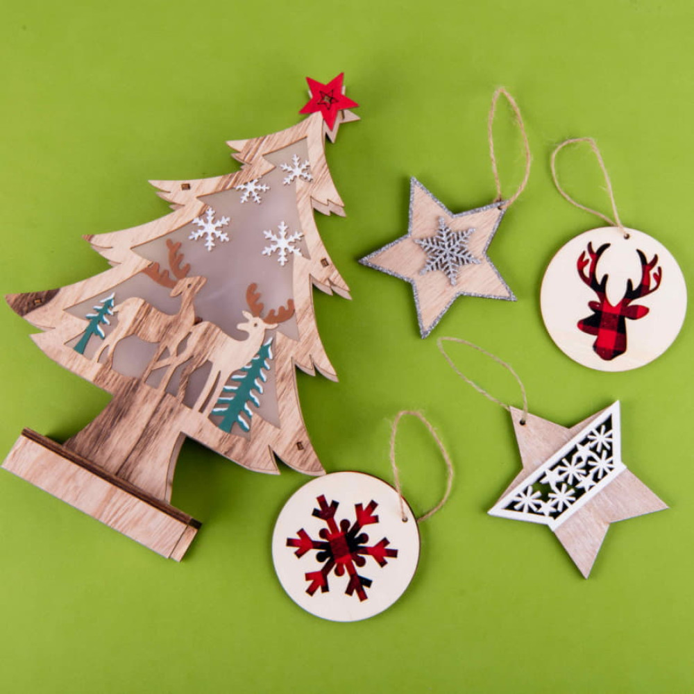 Деревянные новогодние украшения имеют давнюю историю. Это самый первый материал, из которого изготавливали елочные игрушки еще наши предки. Сегодня эти украшения также пользуются огромной популярностью, ведь деревянные фигурки олицетворяют собой сказку, детство, ожидание чуда. А что может быть лучше природного материала? Игрушки из дерева экологичны, а потому наиболее гармонично смотрятся на новогодней елке.Помимо прочего, в отличие от стеклянных игрушек, они не бьются и абсолютно безопасны для детей. Украшения из дерева не требуют особых условий хранения и великолепно персонализируются.
