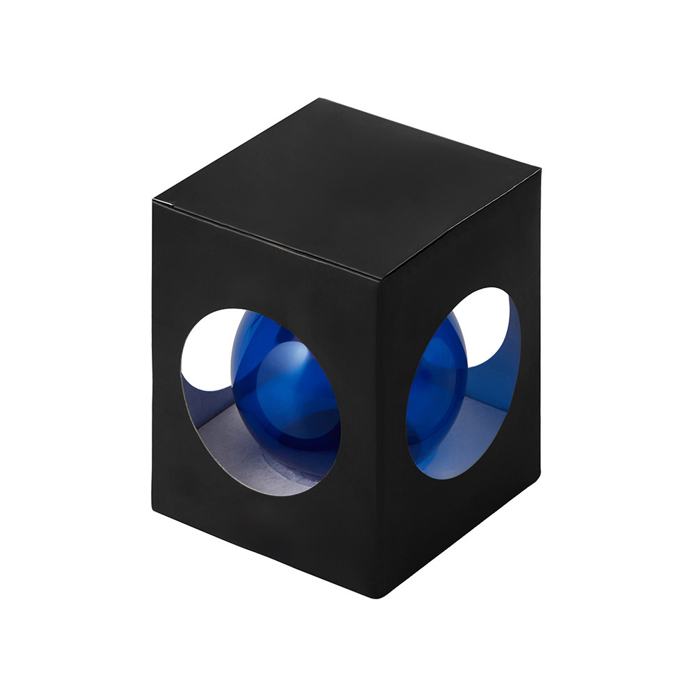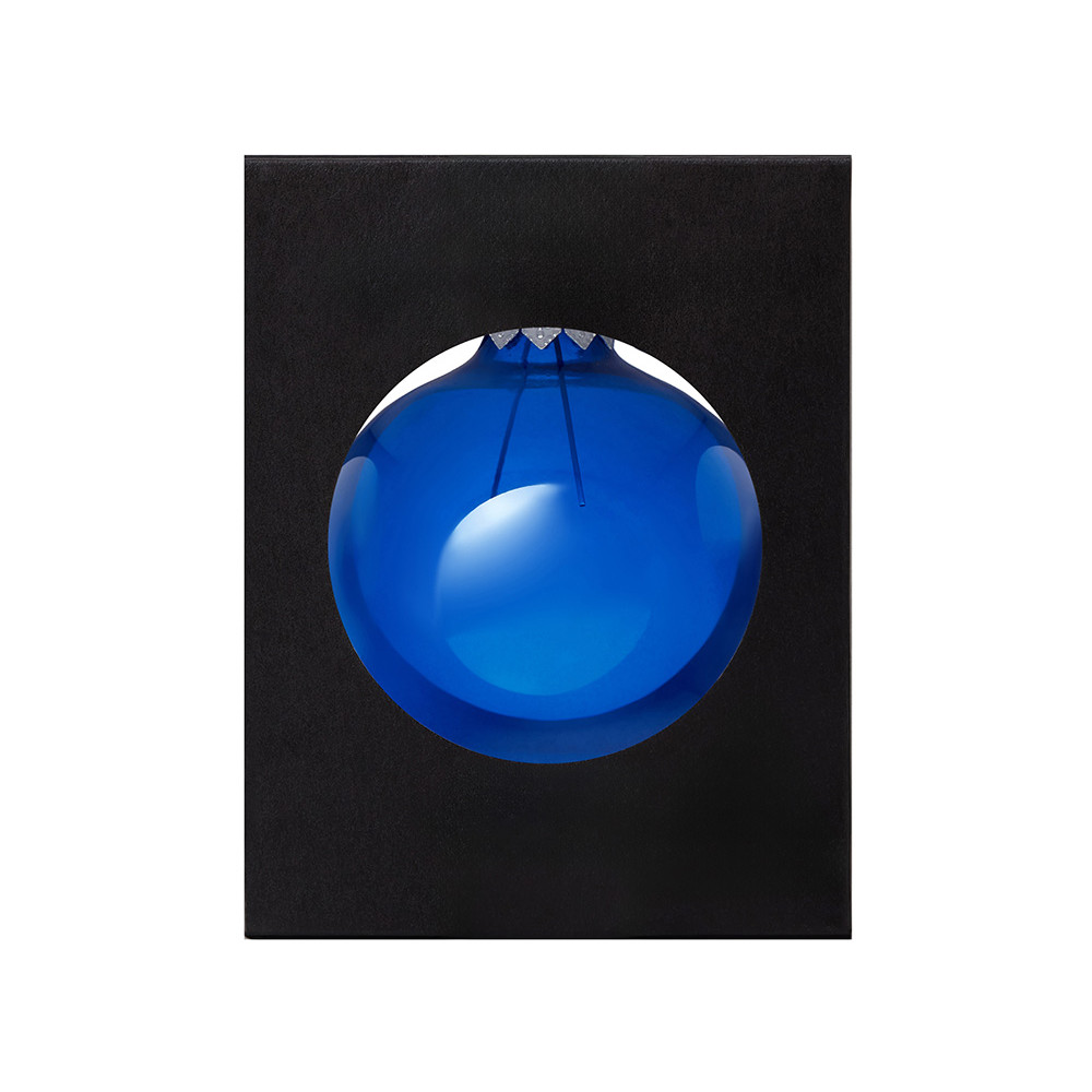 Стеклянный елочный шар Christmas bauble, синий прозрачный, с серебристым колпачком в черной коробке