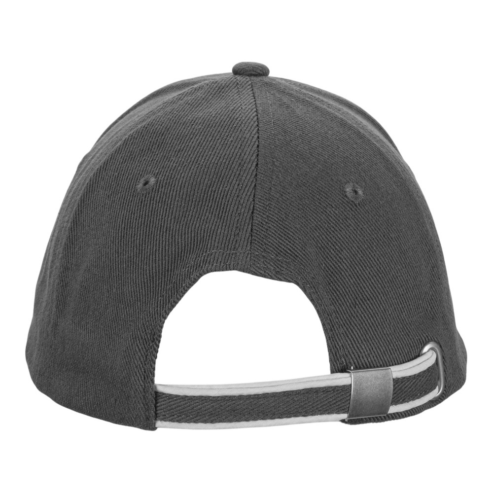 Стильный контрастный кант по козырьку и заднему хлястику добавляет изделию выразительности и делает бейсболку заметным элементом образа.