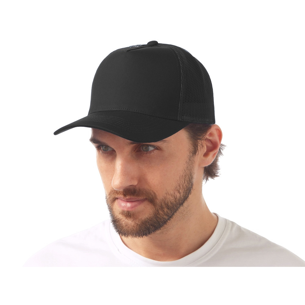 Пяти панельная бейсболка с передней частью из хлопка для комфорта головы и лба. Задняя часть из пластиковой сетки, которая отвечает за циркуляцию воздуха и обеспечивает изделию износостойкость. Для подгонки по размеру головы — пластиковая застежка.