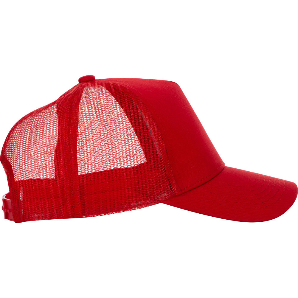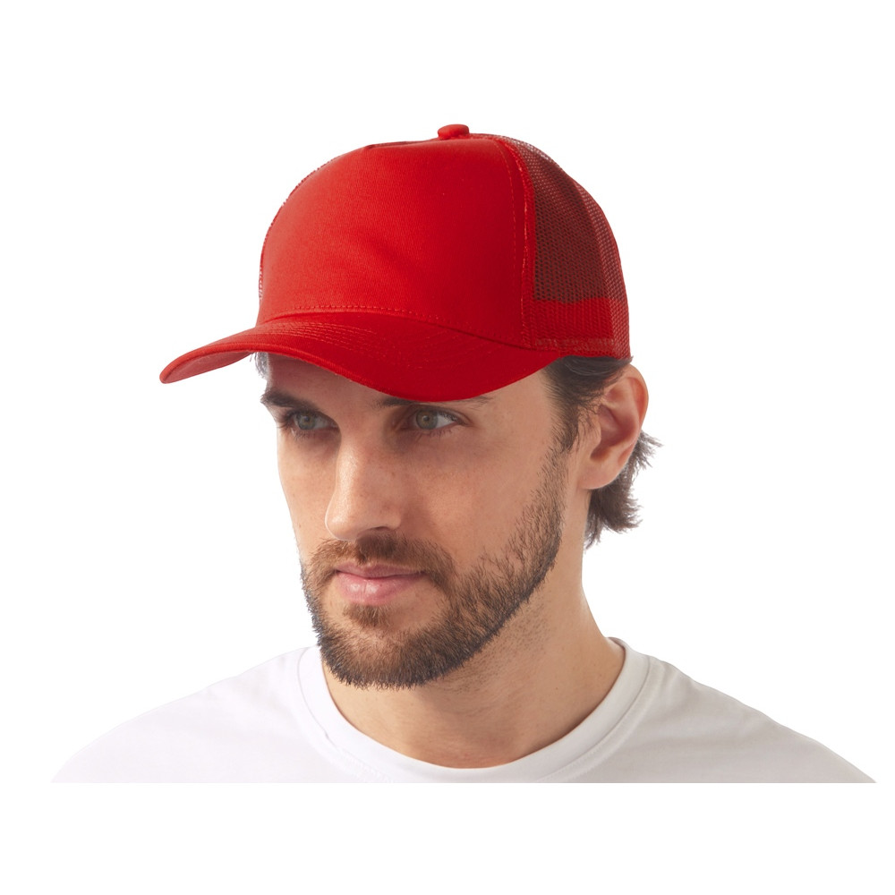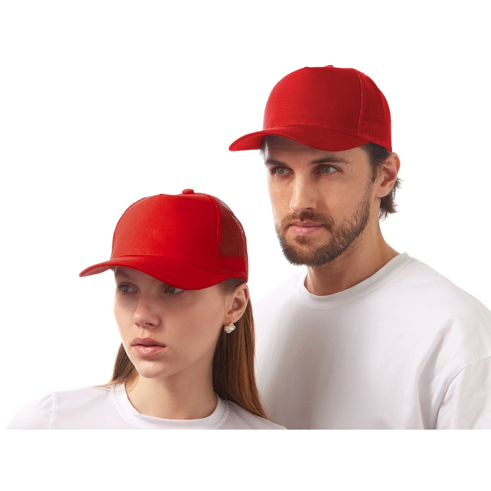 Пяти панельная бейсболка с передней частью из хлопка для комфорта головы и лба. Задняя часть из пластиковой сетки, которая отвечает за циркуляцию воздуха и обеспечивает изделию износостойкость. Для подгонки по размеру головы — пластиковая застежка.