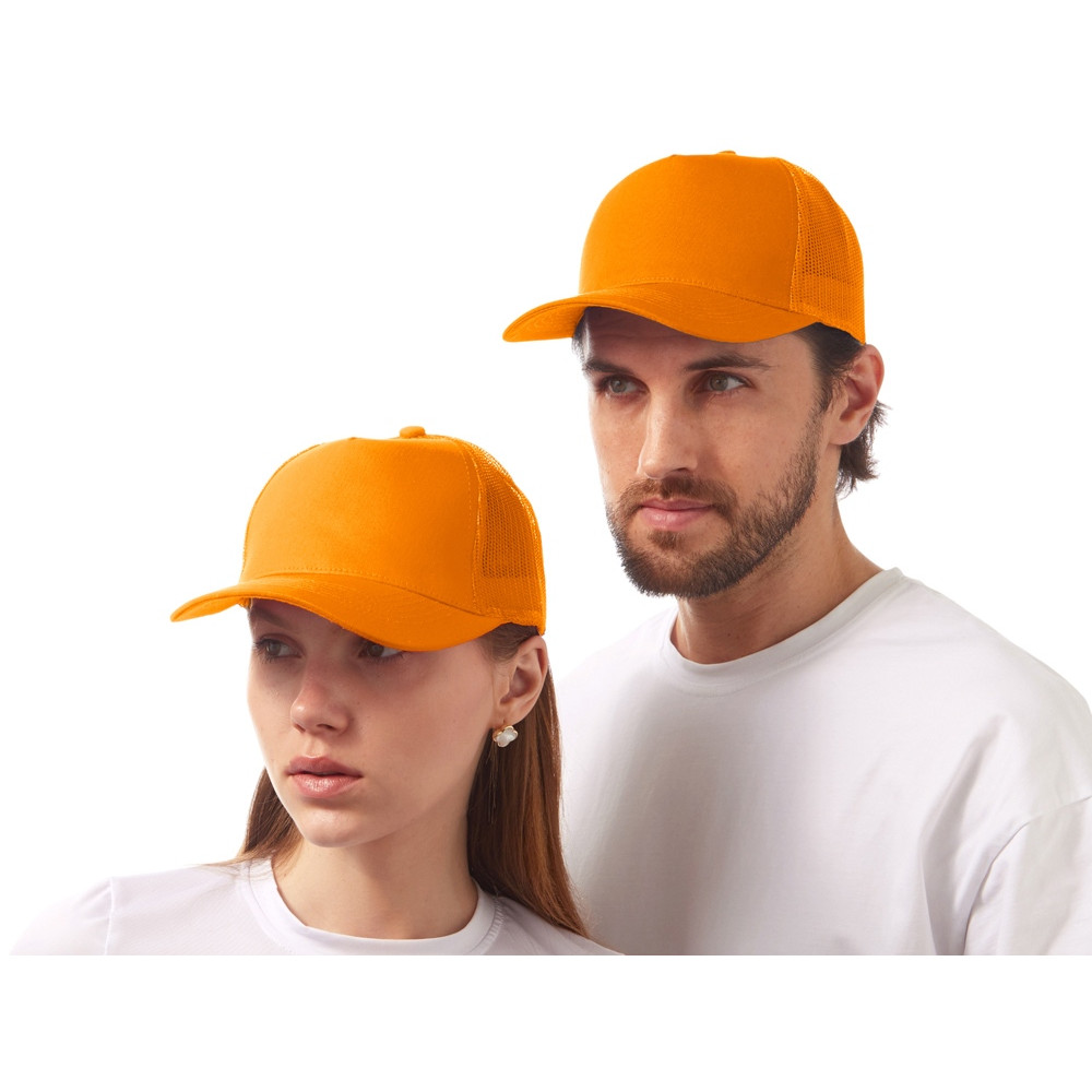Пяти панельная бейсболка с передней частью из хлопка для комфорта головы и лба. Задняя часть из пластиковой сетки, которая отвечает за циркуляцию воздуха и обеспечивает изделию износостойкость. Для подгонки по размеру головы — пластиковая застежка.