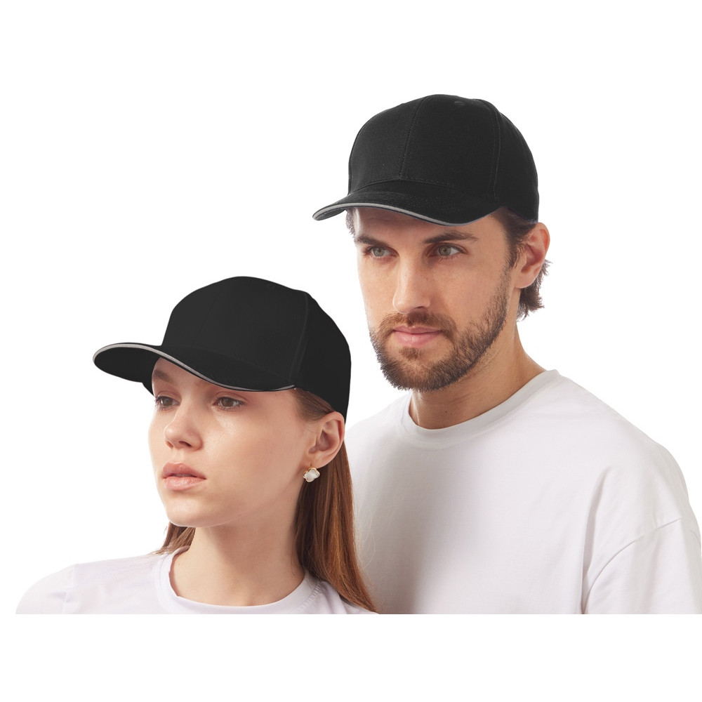 Шестиклинная бейсболка со светоотражающим кантом по козырьку и заднему хлястику - отличный вариант для занятий спортом в вечернее время. Объем регулируется металлической застежкой.