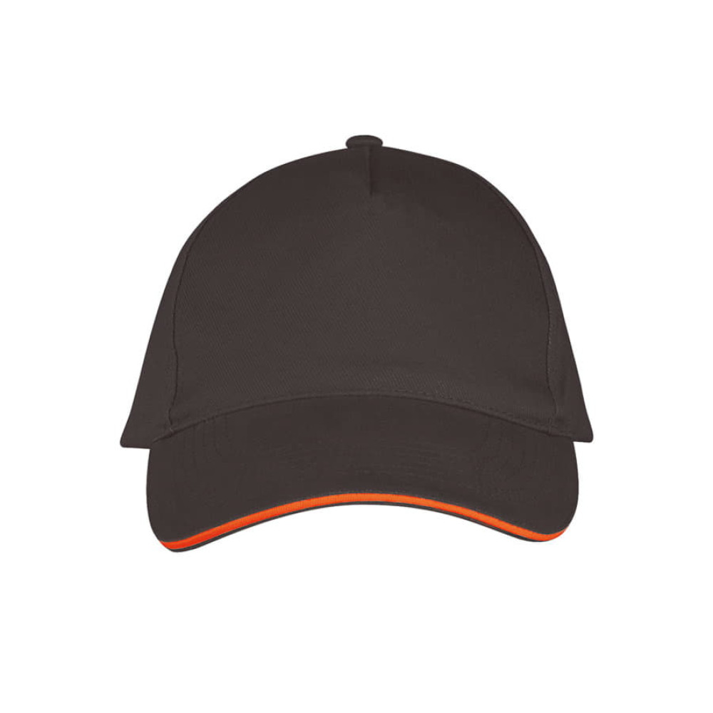 Бейсболка LONG BEACH 260, 5 клиньев, металлическая застежка, цвет темно-серый, оранжевый