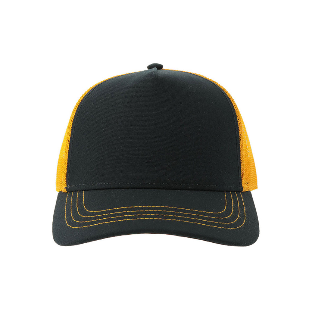 - 5 клиньев, - без лобового шва, - боковые и задние панели со вставкой из мягкой сетки, - изогнутый козырек, - пластиковая застежка. Лобная часть купола и козырек: цвет близкий к Pantone 296 C, сетка: цвет близкий к Pantone 1235 С 58,5 см - средний размер, с помощью застёжки его можно увеличить или уменьшить до необходимого.