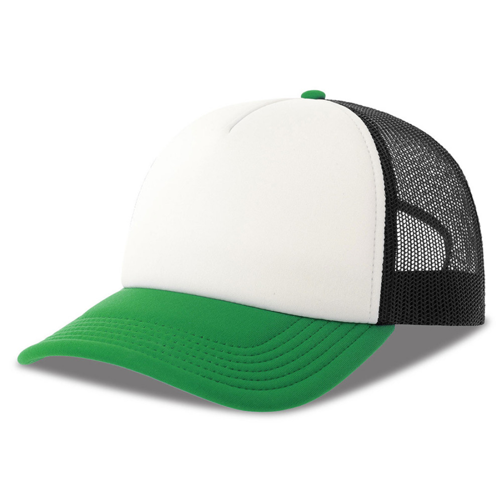 Легкая бейсболка RAPPER - культовая бейсболка-тракер, которая отлично подойдет для мероприятий, проводимых в теплое время года. - 5 клиньев, - без лобового шва, - боковые и задние панели со вставкой из мягкой сетки, - изогнутый козырек, - пластиковая застежка. Лобная часть купола: цвет близкий к Pantone White, цвет козырька - Pantone 349 C, цвет сетки - Pantone Black 6 C