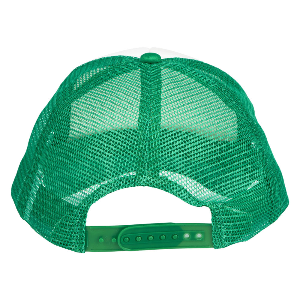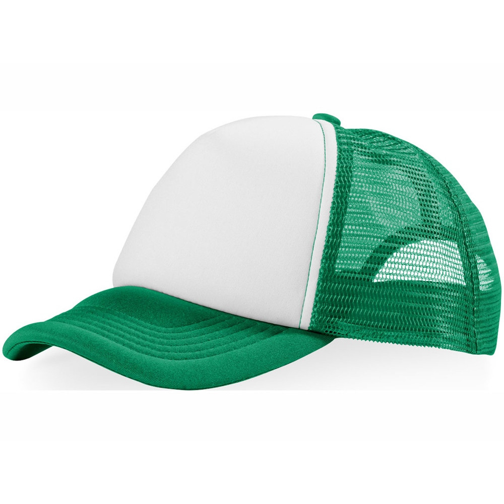 Кепка из 5 панелей Trucker. Оригинальная кепка на окружность головы 58 см с передней поролоновой частью, пластиковой сеткой сзади и пластиковой застежкой. Эта кепка полностью соответствует требованиям к соединениям AZO, формальдегиду и ПХФ. Полиэстер и поролон.