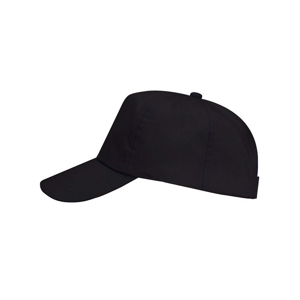 Бейсболка из 5 панелей, два вышитых вентиляционных люверса. Застежка на липучку.