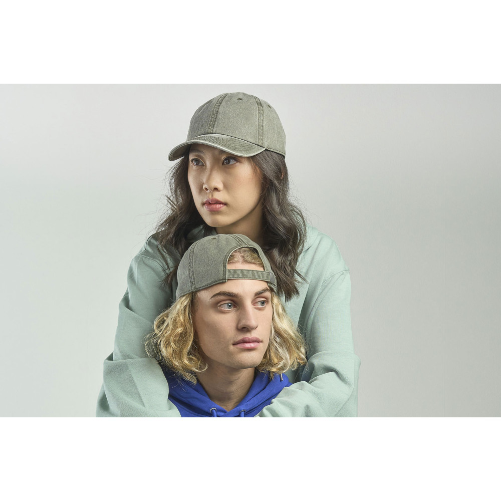 Хлопок, используемый для изготовления бейсболки DIGG, окрашивается с помощью специального порошкового пигмента, благодаря чему достигается эффект состаривания. Такой метод – делаве - фактически не окрашивает материал, а окрашивает только внешний слой, в отличие от традиционных красителей, которые полностью проникают в ткань.- 6 клиньев,- 6 вышитых люверсов,- металлическая застежка, - изогнутый козырек средней длины. 58 см - минимальный размер, с помощью застёжки его можно увеличить до необходимого.