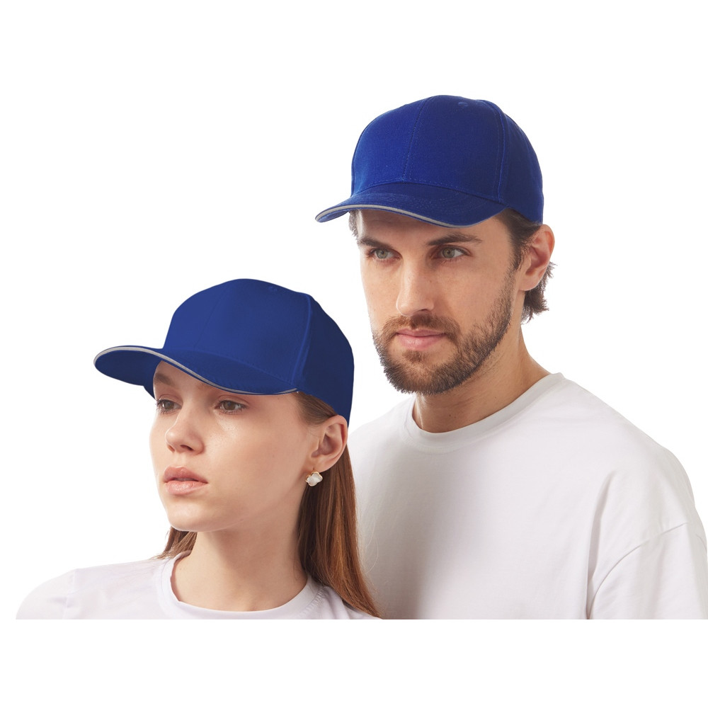 Шестиклинная бейсболка со светоотражающим кантом по козырьку и заднему хлястику - отличный вариант для занятий спортом в вечернее время. Объем регулируется металлической застежкой.