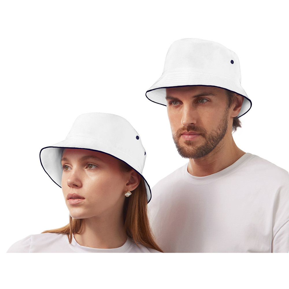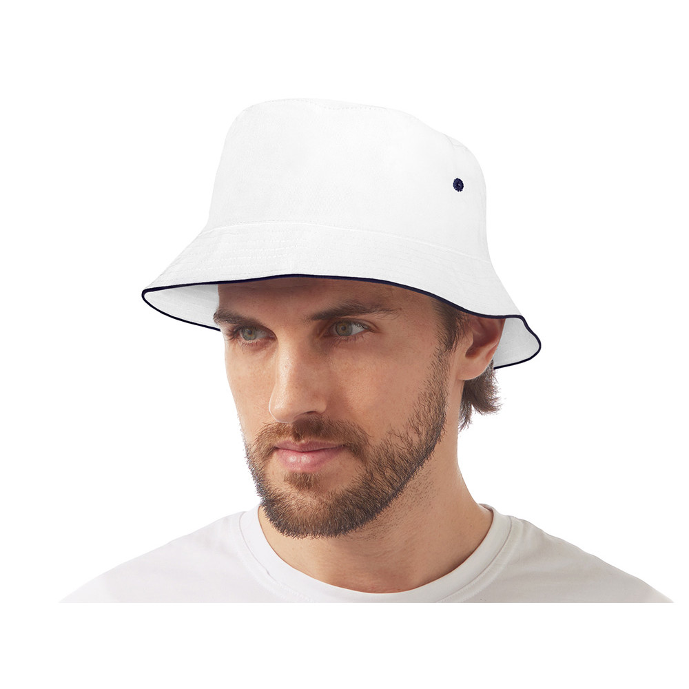Панама из хлопкового твила с контрастным кантом и контрастными вентиляционными отверстиями.