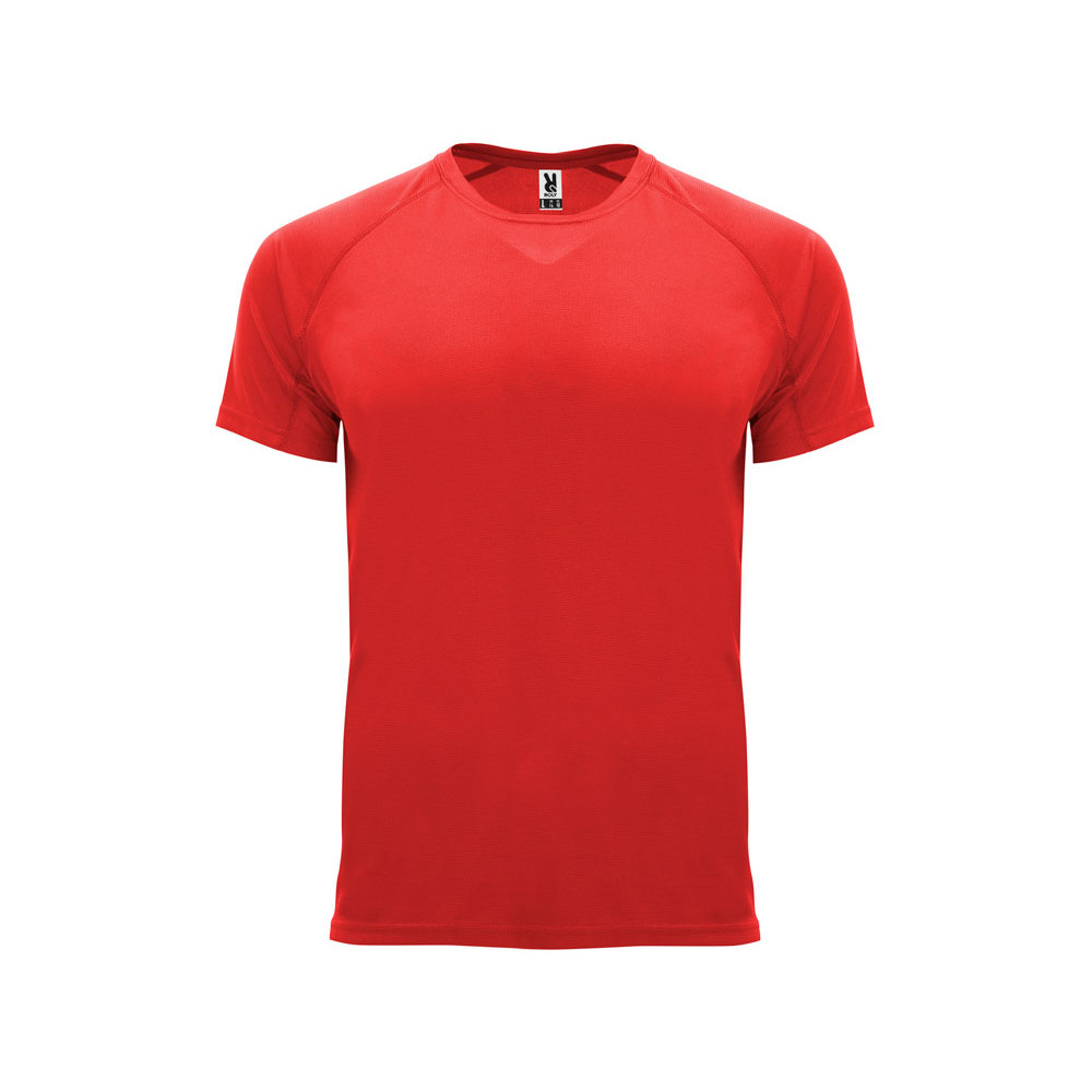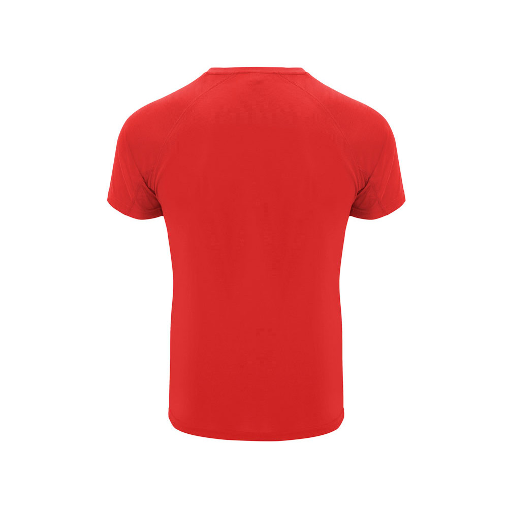 Спортивная футболка с коротким рукавом реглан. Круглый вырез горловины с отделкой плоским швом. Рукав сложного кроя для обеспечения дополнительного удобства при занятиях спортом. Отделка плоским швом с застилом по пройме и рукавам.
