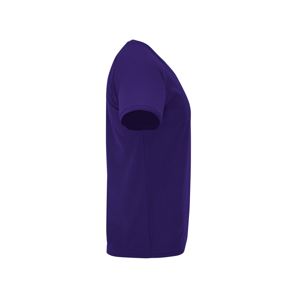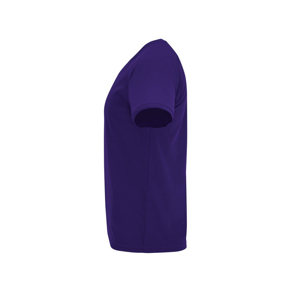 Спортивная футболка с коротким рукавом реглан. Круглый вырез горловины с отделкой плоским швом. Рукав сложного кроя для обеспечения дополнительного удобства при занятиях спортом. Отделка плоским швом с застилом по пройме и рукавам.