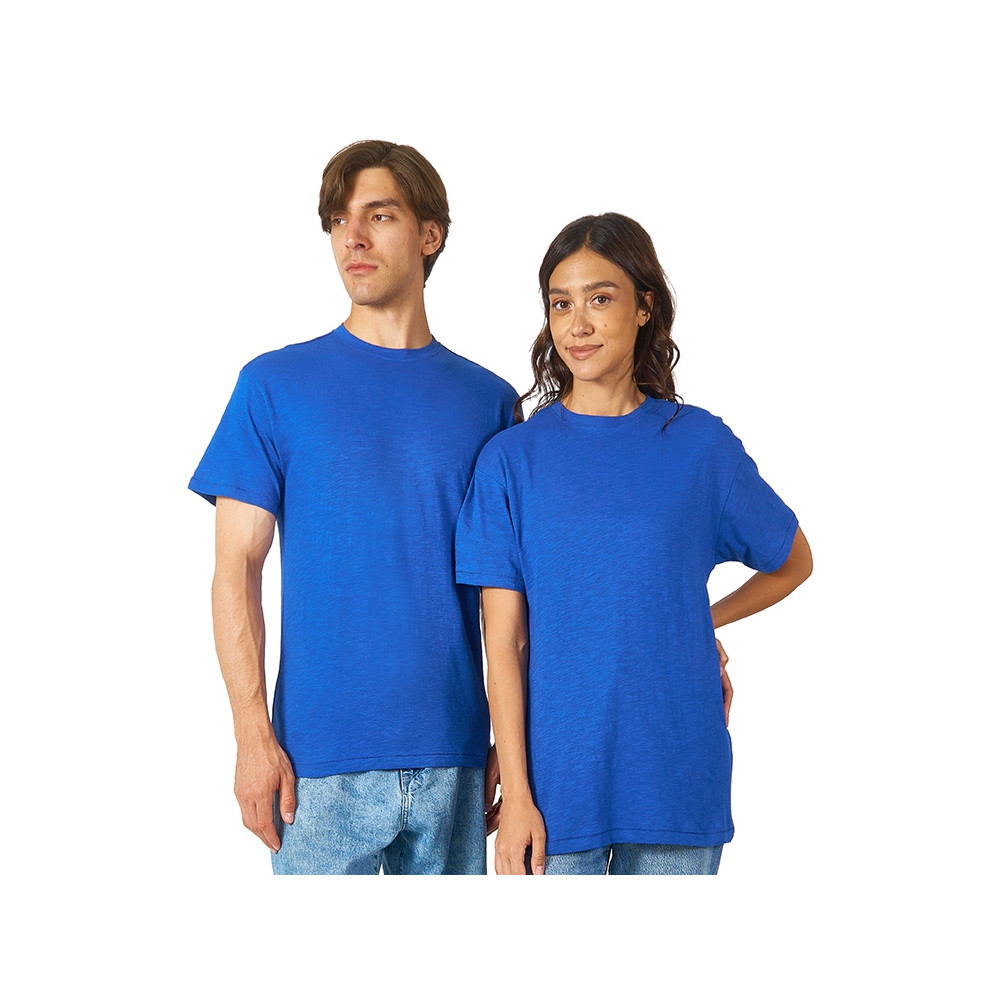 Полотно футболки имеет необычную структуру - с протяжками, но при этом гладкую поверхность, что обеспечивает идеальную поверхность для нанесения: прямая печать, трафаретная или термотрансфер прекрасно ложатся на такое полотно. Декоративная отстрочка по низу рукавов и изделия, а также отстрочка по горловине позволяют футболке дольше сохранять форму.