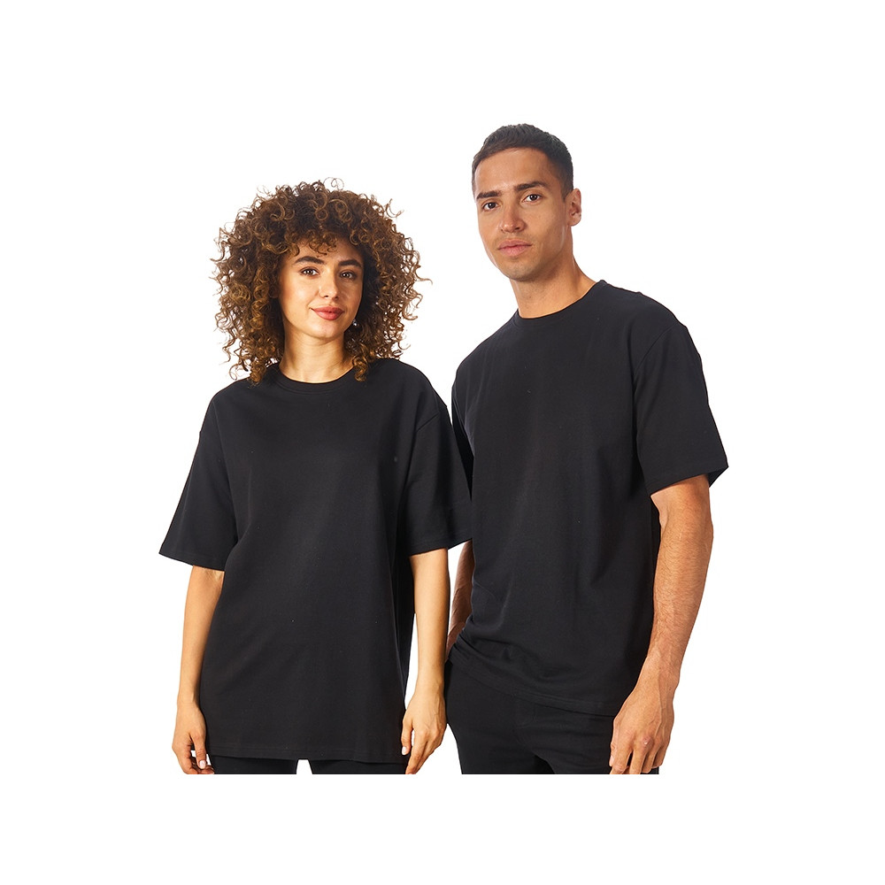 Футболка выполнена из хлопкового френч терри с петельками на изнаночной стороне. Горловина обработана рибом 2х2 и дополнительно усилена тесьмой-елочкой с внутренней стороны спинки. Гладкая поверхность полотна позволяет идеально нанести изображение. Футболка расслабленного силуэта для прогулок и других видов приятного времяпрепровождения