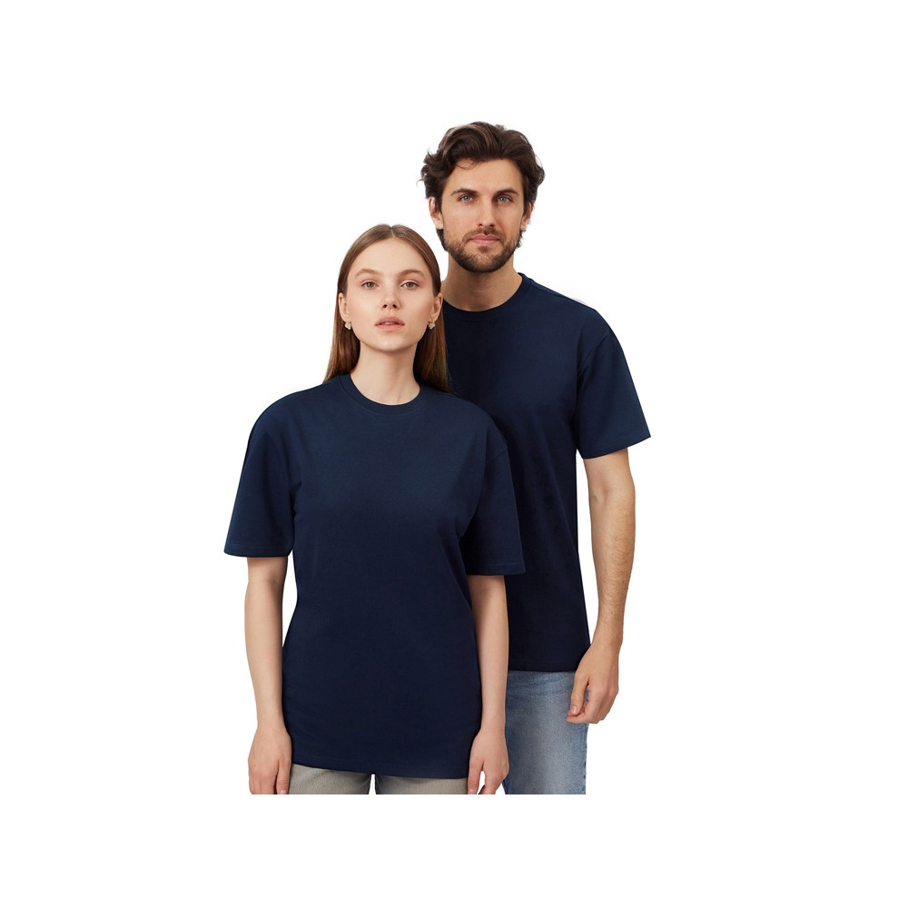 Футболка выполнена из хлопкового френч терри с петельками на изнаночной стороне. Горловина обработана рибом 2х2 и дополнительно усилена тесьмой-елочкой с внутренней стороны спинки. Гладкая поверхность полотна позволяет идеально нанести изображение. Футболка расслабленного силуэта для прогулок и других видов приятного времяпрепровождения