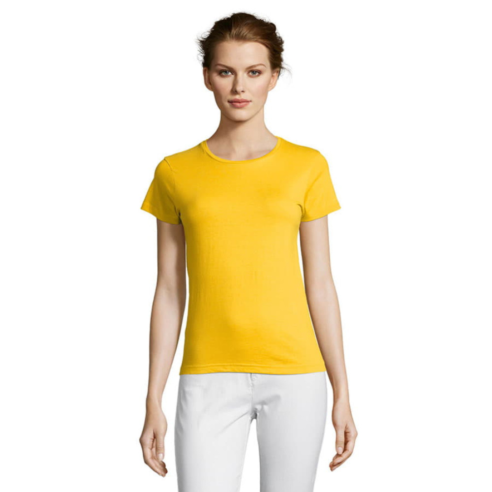 Цвет, близкий к Pantone 1225C Все мы знаем: чтобы увеличить узнаваемость компании, брендированные товары должны быть полезными, актуальными и качественными. Всем этим характеристикам отвечает футболка знаменитого французского бренда модной одежды SOLS. Miss — это базовая, комфортная и недорогая классическая футболка с фасонными (фигурными) швами для более женственной посадки из мягкого хлопкового полотна. Мягкость достигается за счет тонкой, но прочной пряжи, обеспечивающей приятные тактильные ощущения при носке.