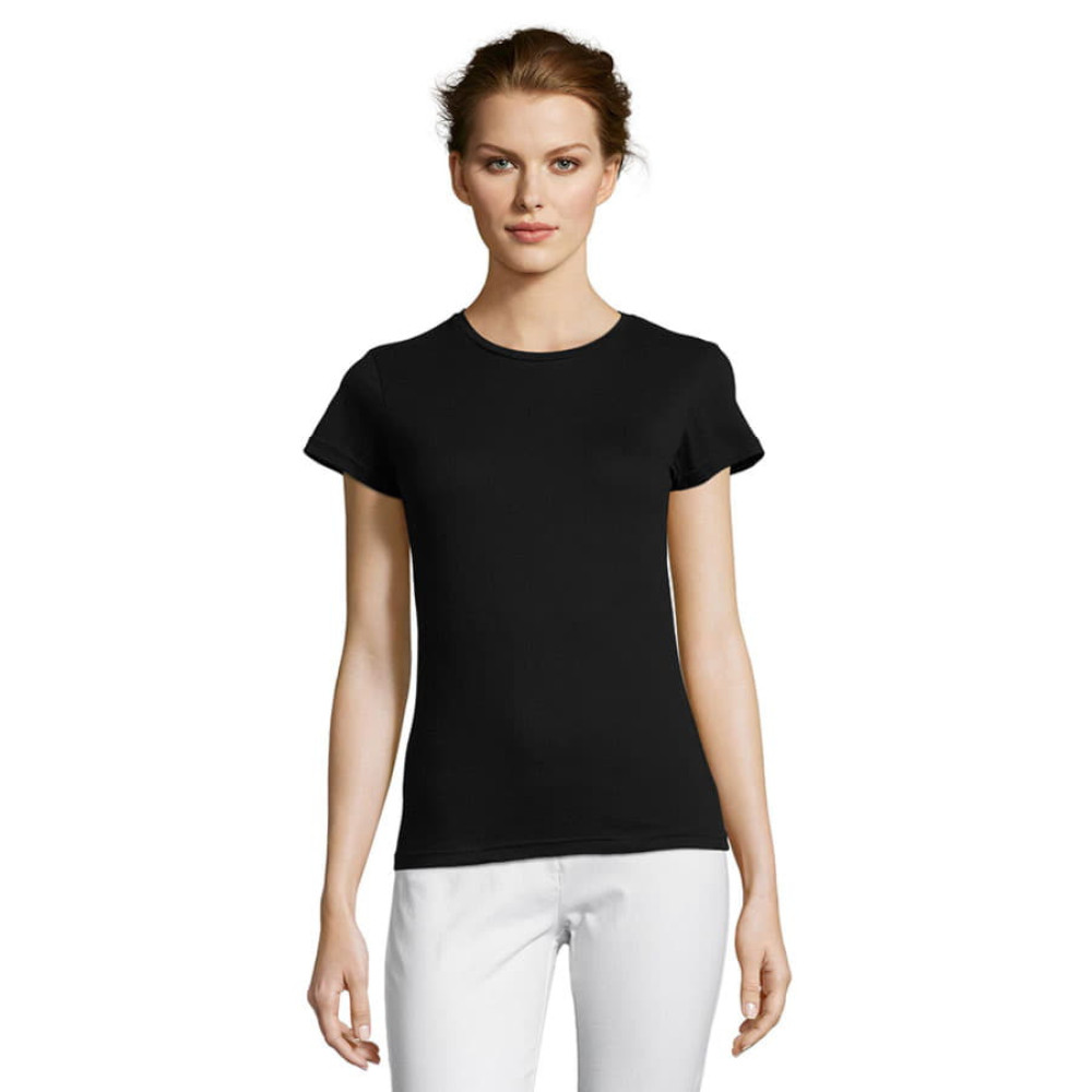 Женская футболка из 100% полугребенного хлопка.Приталенная модель. Укрепляющая тесьма по вороту.