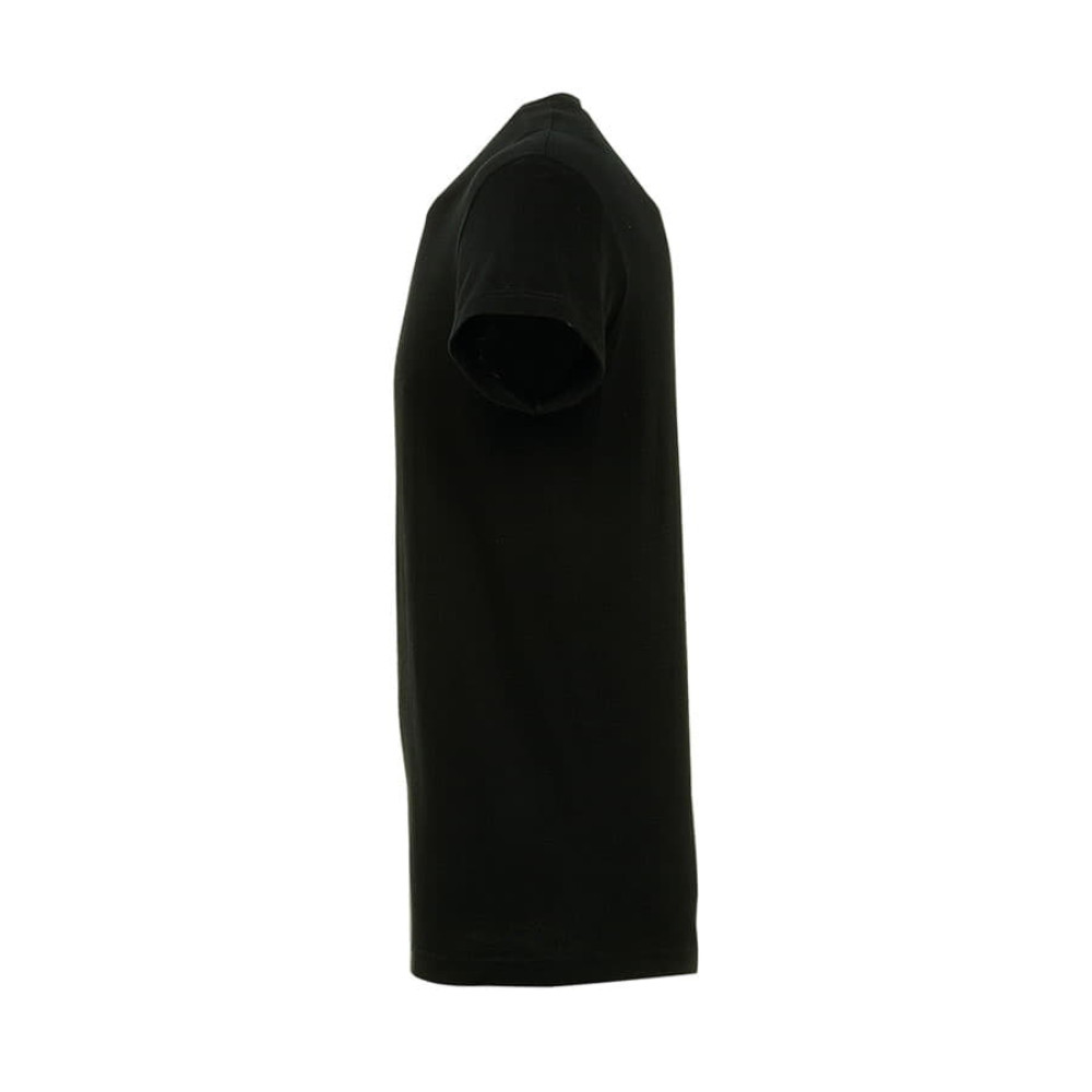 Это базовая, комфортная и недорогая классическая футболка без боковых швов из мягкого хлопкового полотна. Мягкость достигается за счет тонкой, но прочной пряжи, имеющей ровную безворсовую структуру. Круглый ворот из рибаны с эластаном. Укрепляющая тесьма по вороту. Втачной рукав. Прямой силуэт. Широкая цветовая гамма, наличие парных женских и детских моделей. Цвет близкий к PANTONE Black C
