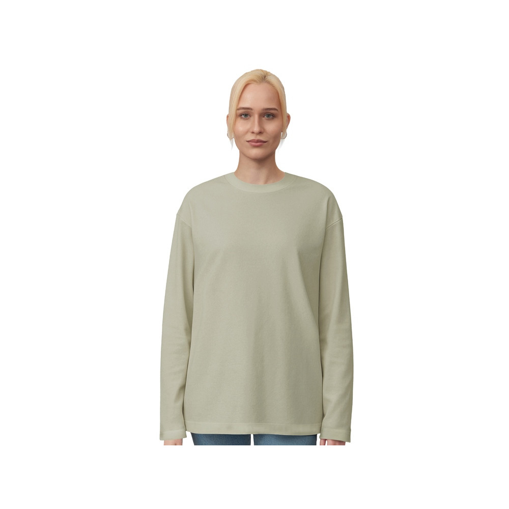 Футболка оверсайз с длинным рукавом выполнена из качественного джерси плотностью 200гр. Это модель унисекс подходит как для мужчин, так и для женщин, обеспечивая комфорт и стильный внешний вид.