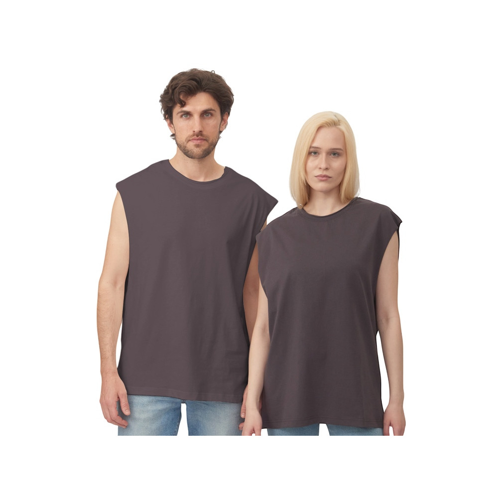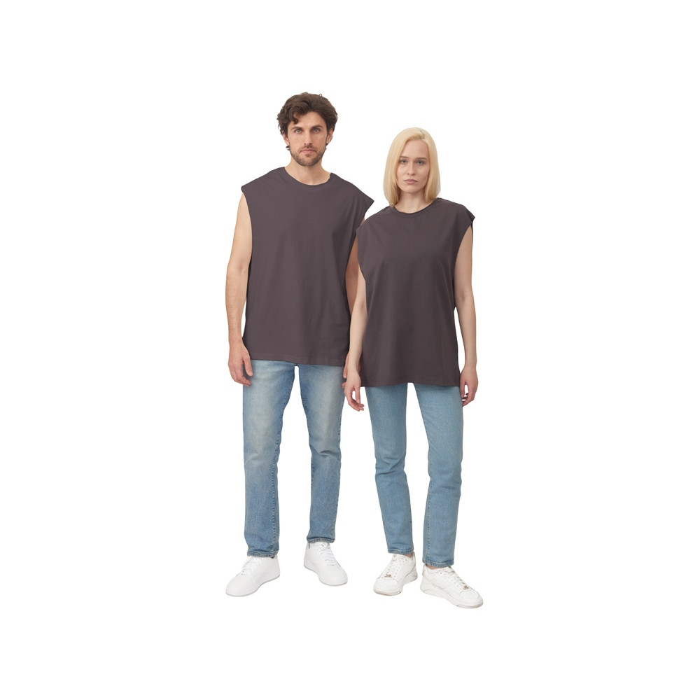 Майка унисекс расширенного силуэта со спущенным плечом, выполнена из плотного джерси 180гр.