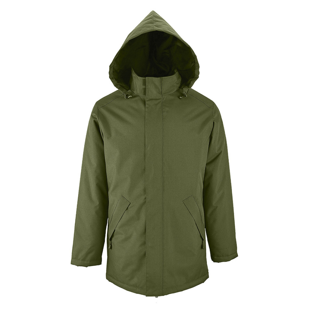 Куртка-парка унисекс на стеганой подкладке ROBYN 170Основная ткань «оксфорд»: 100% полиэстер с водоотталкивающей пропиткойСтеганая подкладка: 100% полиэстерУтеплитель: 100% полиэстер, 170 г м2Температурный режим определяется в зависимости от индивидуальных особенностей человека. Куртка на тонком утеплителе рассчитана на евро-зиму (от 0 до -10 С) Стильная теплая парка унисекс прямого кроя станет необходимой в промозглое осенне-зимнее время года. Благодаря пропитке ПВХ - (PVC) поливинилхлорид, ткань полностью прорезинена внутри, что делает ее водонепроницаемой и формоустойчивой. Куртка на застежке-молнии с двумя пуллерами для удобства открытия и планкой на скрытых кнопках надежно убережет от попадания ветра и влаги. Внутренняя планка на верхней части куртки обезопасит от прищемления молнией при закрытии. Высокий воротник- стойка (7 см) с внутренней стороны отделан флисом для мягкости и комфорта, а снаружи прячет в себя капюшон на кулиске с резинкой и стопером. Капюшон без утеплителя всегда можно легко достать и разложить, если погода резко испортится, а потом также убрать. Длинные рукава с утеплителем внутри и на застежке-липучке помогут сохранить тепло. 2 внешних кармана на молнии и один внутренний на застежке-липучке уберегут небольшие предметы от намокания. Изнутри на стеганной подкладке внизу имеется технологический карман для удобства персонализации. Упакована куртка в прозрачный фирменный пластиковый пакет Sol's.Цвет близкий к PANTONE 7762 С