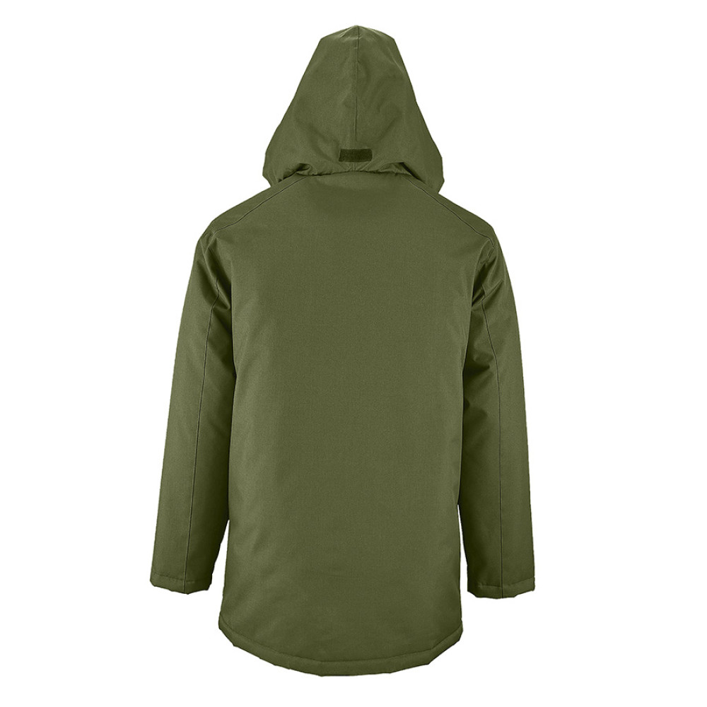 Куртка-парка унисекс на стеганой подкладке ROBYN 170Основная ткань «оксфорд»: 100% полиэстер с водоотталкивающей пропиткойСтеганая подкладка: 100% полиэстерУтеплитель: 100% полиэстер, 170 г м2 Температурный режим определяется в зависимости от индивидуальных особенностей человека. Куртка на тонком утеплителе рассчитана на евро-зиму (от 0 до -10 С)Стильная теплая парка унисекс прямого кроя станет необходимой в промозглое осенне-зимнее время года. Благодаря пропитке ПВХ - (PVC) поливинилхлорид, ткань полностью прорезинена внутри, что делает ее водонепроницаемой и формоустойчивой. Куртка на застежке-молнии с двумя пуллерами для удобства открытия и планкой на скрытых кнопках надежно убережет от попадания ветра и влаги. Внутренняя планка на верхней части куртки обезопасит от прищемления молнией при закрытии. Высокий воротник- стойка (7 см) с внутренней стороны отделан флисом для мягкости и комфорта, а снаружи прячет в себя капюшон на кулиске с резинкой и стопером. Капюшон без утеплителя всегда можно легко достать и разложить, если погода резко испортится, а потом также убрать. Длинные рукава с утеплителем внутри и на застежке-липучке помогут сохранить тепло. 2 внешних кармана на молнии и один внутренний на застежке-липучке уберегут небольшие предметы от намокания. Изнутри на стеганной подкладке внизу имеется технологический карман для удобства персонализации. Упакована куртка в прозрачный фирменный пластиковый пакет Sol's.Цвет близкий к PANTONE 7762 С