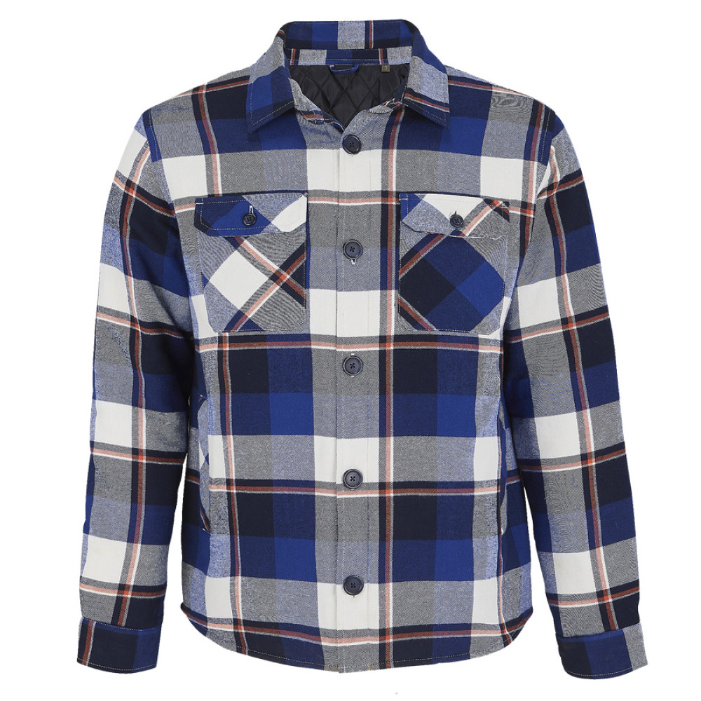 Рубашка, утепленная стеганой подкладкой. Центральная застежка на пуговицах. Внутренняя молния в нижней части для персонализации. Два нагрудных кармана и манжеты - на пуговицах. Внутренний нагрудный карман с застежкой на липучке.Удлиненная спинка, свободный крой.