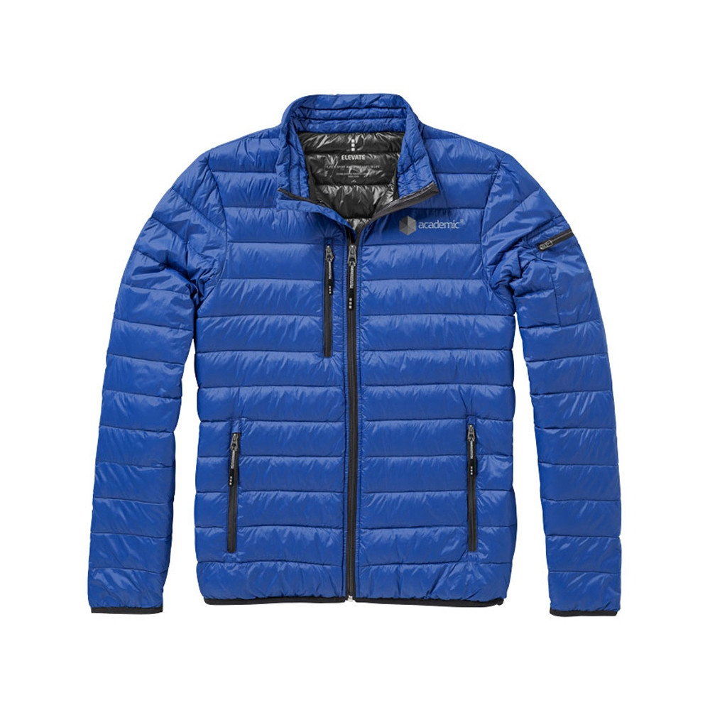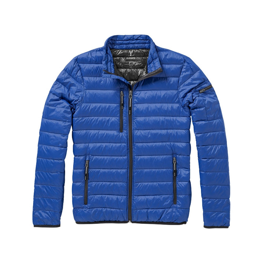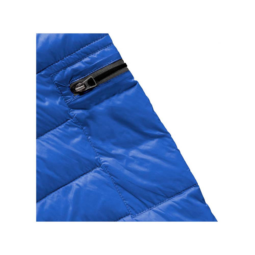 Легкая куртка Scotia. Стандартный покрой. Ткань не пропускает пух. Карманы для рук и нагрудный на молнии. Карман на рукаве на молнии можно использовать для нанесения. Резинка на манжетах и внизу куртки. Ремешки на собачку (второй комплект в цвете антрацит). Внутренний противоветровой клапан и защита подбородка. Ткань дышащая, ветронепроницаемая и влагоотталкивающая. Отражающий лого сзади. Легкий пуховик. Ткань из 100% нейлона с матовым и блестящим водоотталкивающим покрытием, 20D. 80% пух и 20% перо. 115 г/м².