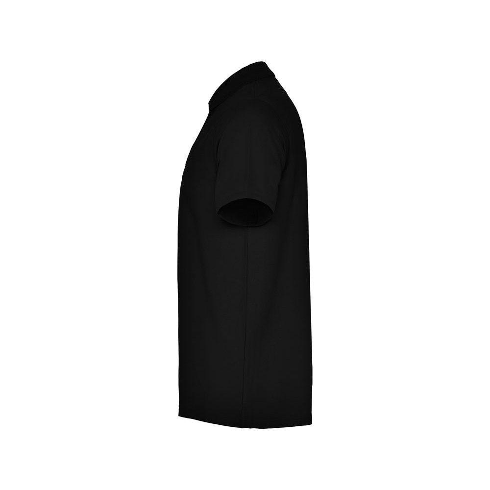 Поло с коротким рукавом, воротник из риба 1х1, планка застегивается на 3 пуговицы.