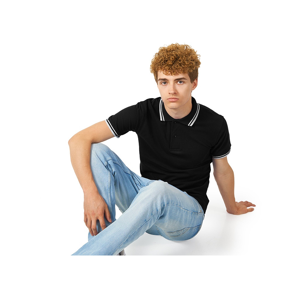 Рубашка-поло Erie с окантовкой. Воротник и манжеты резинка 1х1. Мужская модель с двумя пуговицами, женская - 4 пуговицы в тон изделия. Обшивка внутри воротника. Женская модель с разрезами по бокам. Женская модель приталена. Пике, 100% чесаный хлопок. Плотность 180 г/м2.