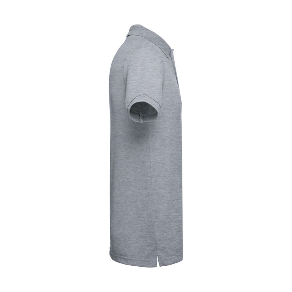 Мужская рубашка-поло из смесовой ткани-пике. Полотно футболки упругое и гладкое благодаря обработке ферментами "enzyme wash" и сохраняет форму при стирке. Модель полуприлегающего силуэта. Благодаря манжете из риба 1х1 рукав смотрится очень аккуратно. Воротник также выполнен из риба 1х1, внутри ворота - укрепляющая тесьма по горловине. Планка с 3 пуговицами в тон изделия. запасная пуговица на ярлыке во внутреннем боковом шве. Цвет, близкий к Pantone Cool Grey 8