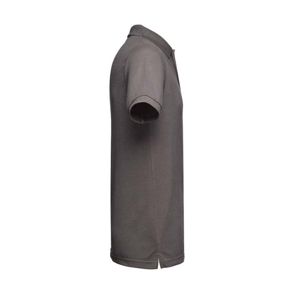 Мужская рубашка-поло из смесовой ткани-пике. Полотно футболки упругое и гладкое благодаря обработке ферментами "enzyme wash" и сохраняет форму при стирке. Модель полуприлегающего силуэта. Благодаря манжете из риба 1х1 рукав смотрится очень аккуратно. Воротник также выполнен из риба 1х1, внутри ворота - укрепляющая тесьма по горловине. Планка с 3 пуговицами в тон изделия. запасная пуговица на ярлыке во внутреннем боковом шве.