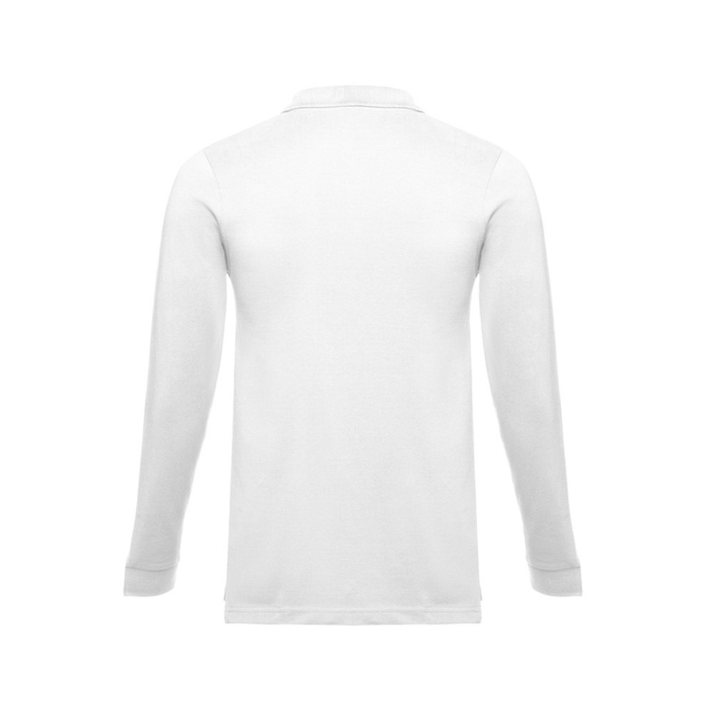 Мужская рубашка-поло с длинным рукавом из хлопковой ткани-пике. Полотно футболки упругое и гладкое благодаря обработке ферментами "enzyme wash" и сохраняет форму при стирке. Модель полуприлегающего силуэта. Благодаря манжете из риба 1х1 рукав смотрится очень аккуратно. Воротник также выполнен из риба 1х1, внутри ворота - укрепляющая тесьма по горловине. Планка с 3 пуговицами в цвет основной ткани изделия. Запасная пуговица на ярлыке во внутреннем боковом шве.